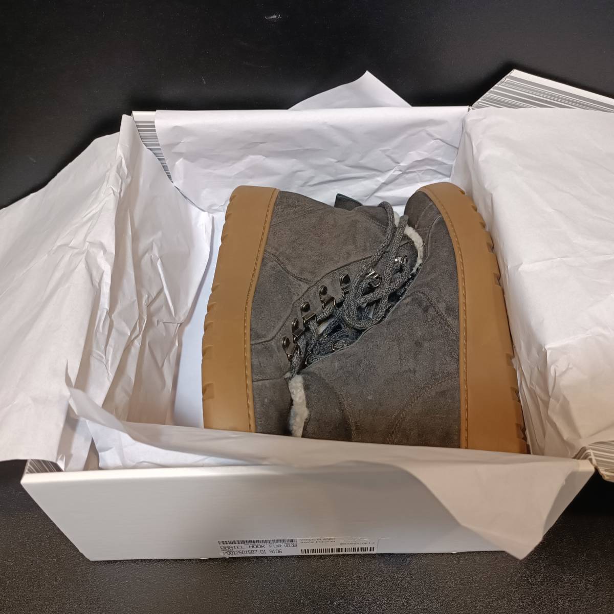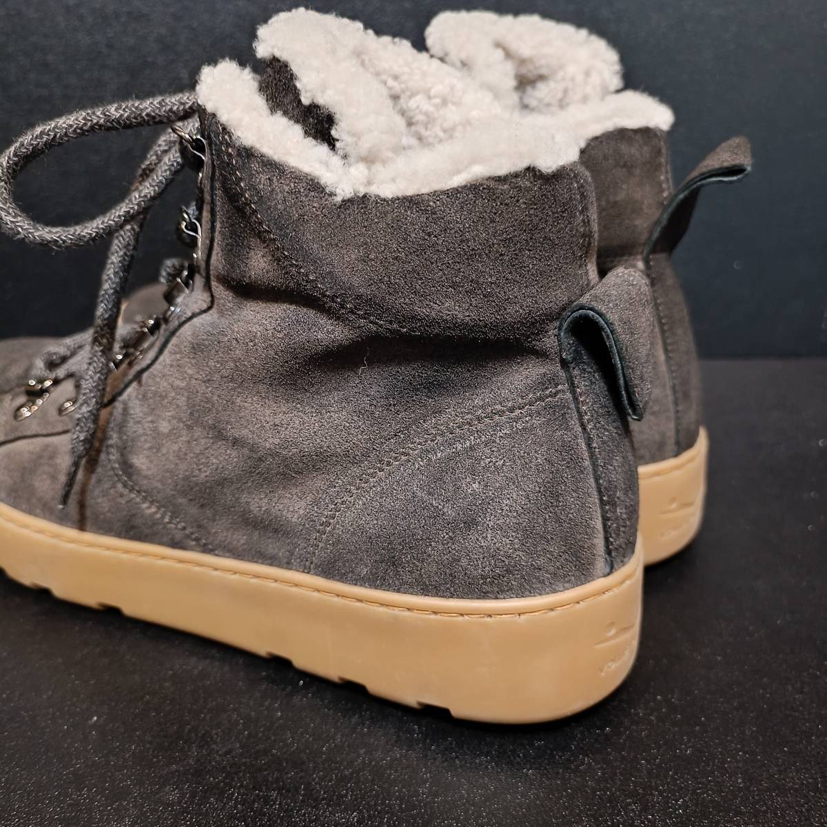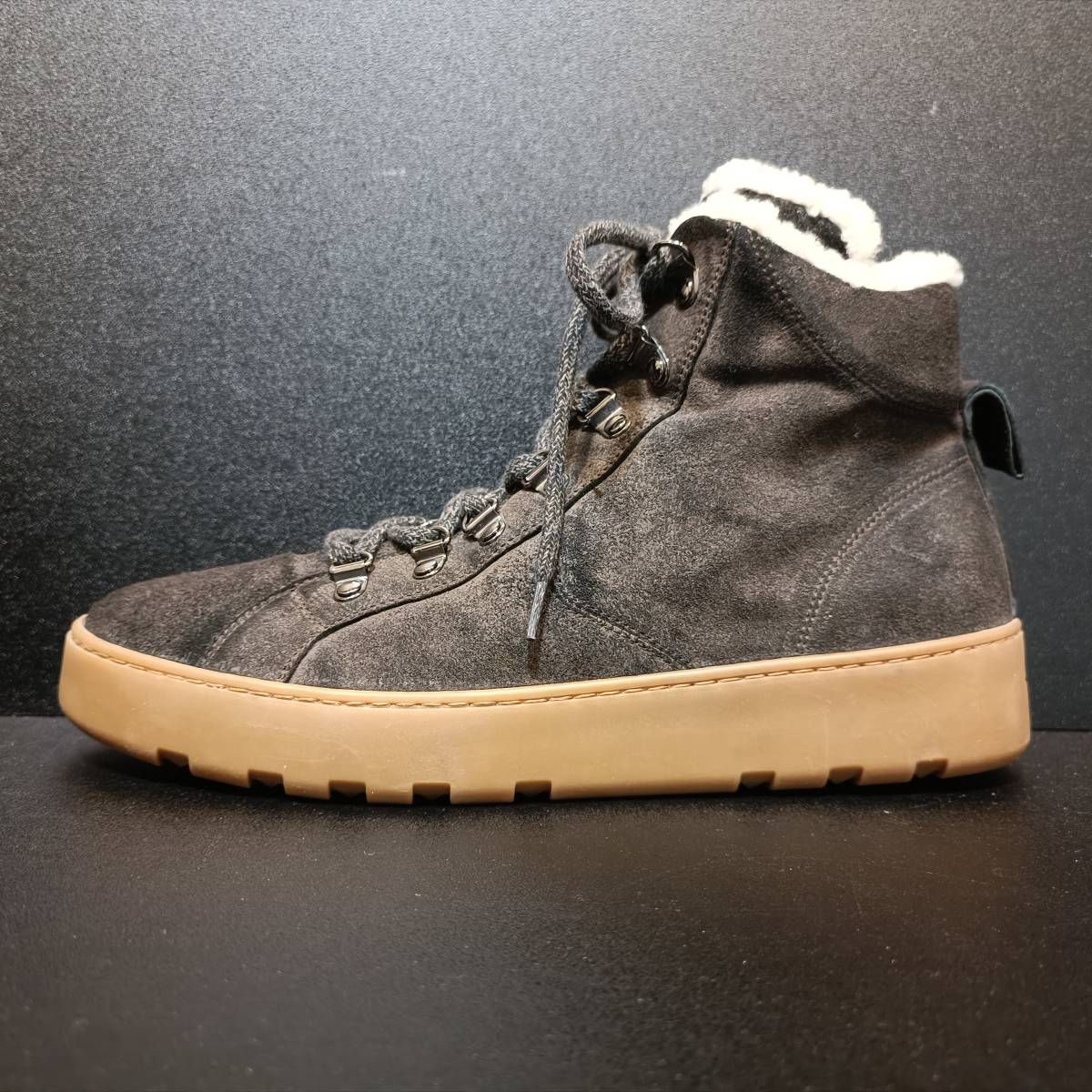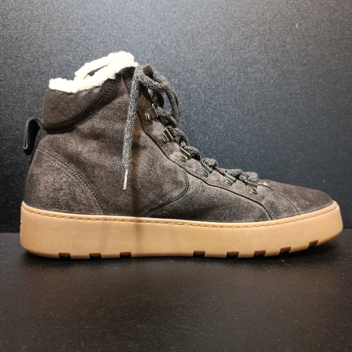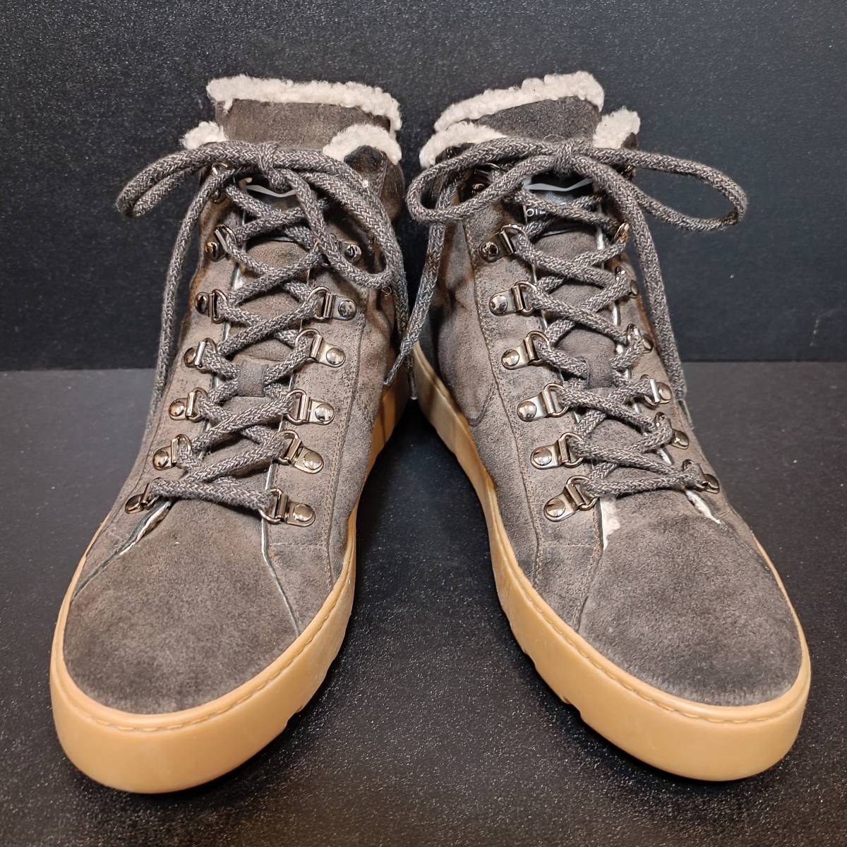 本品はモデル名「DANIEL」、ブラウングレーのスエードレザーを用いた内ボア・フック式ハイカットスニーカーです。