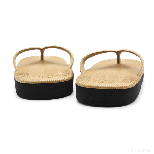 鼻緒と上底の一体成型で鼻緒が抜ける悩みがありません。アッパーは多少の汚れならさっと拭いて手入れできます。