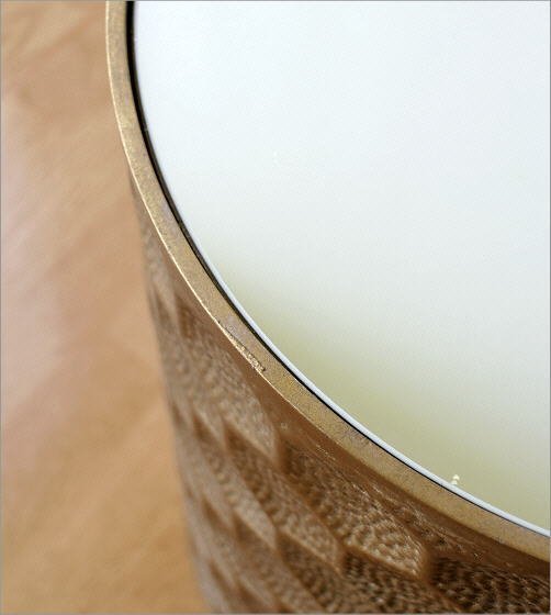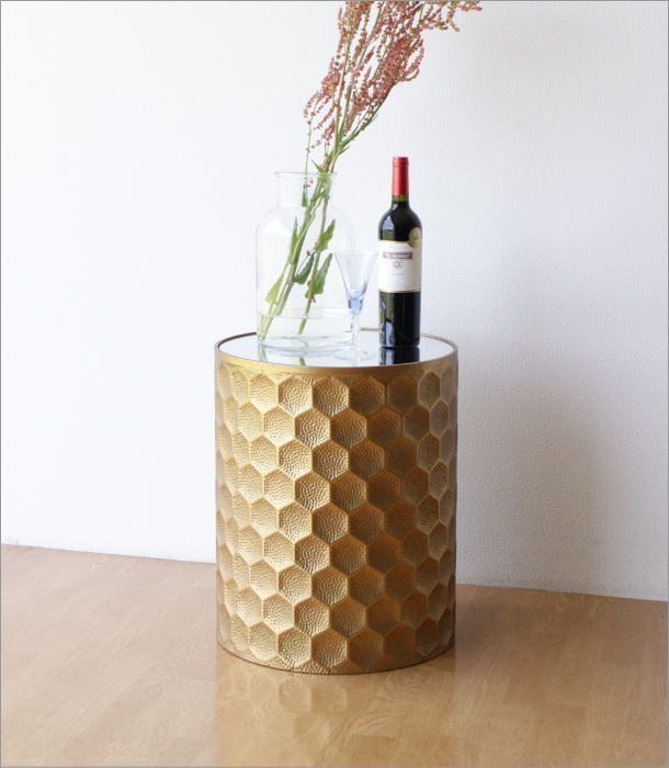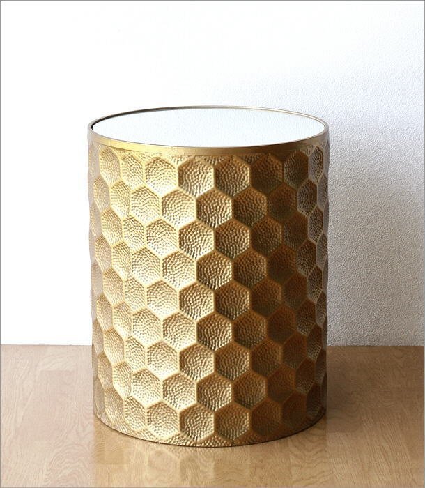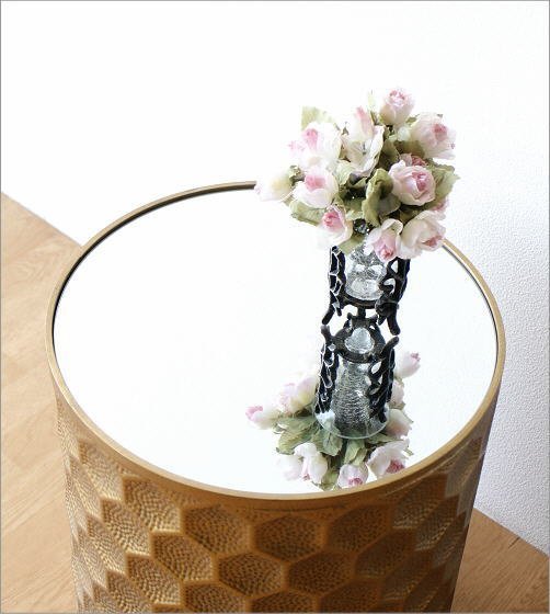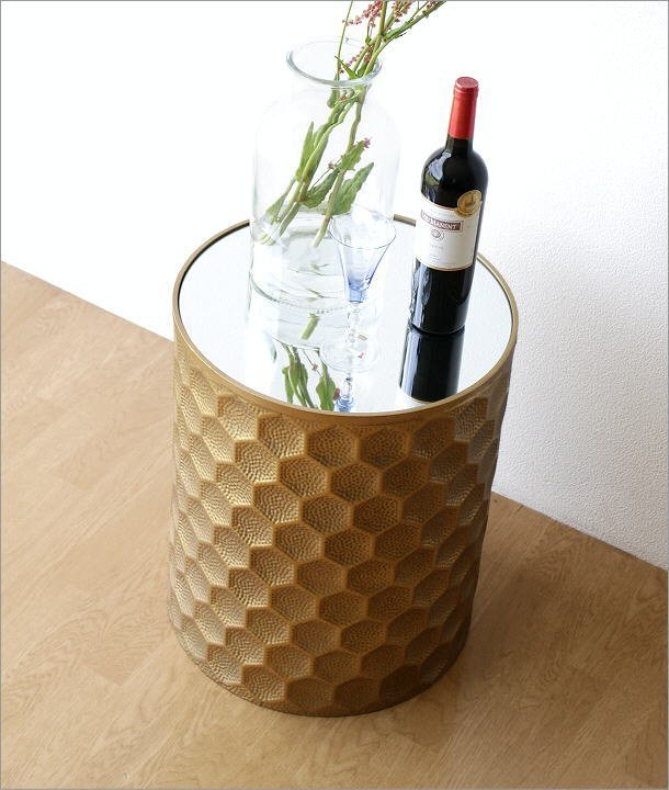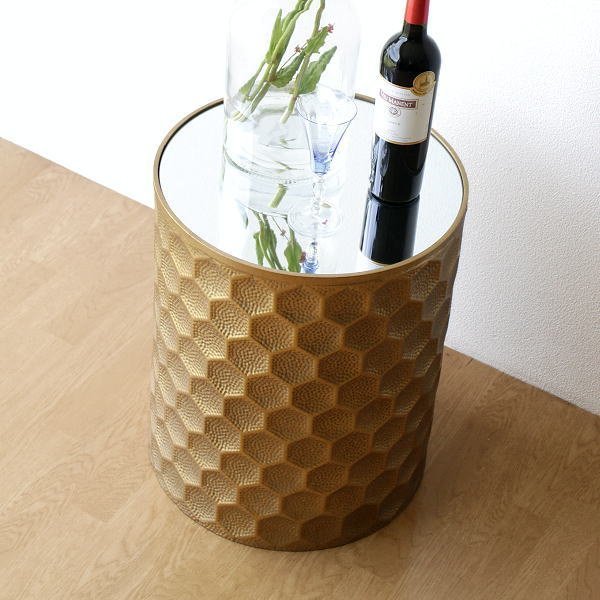 | 立体的なハニカム模様のアイアンに ハンマーで槌目をつけた アンティークゴールドの土台に ミラーの天板をあわせた ちょっと見かけない 高級感のあるアクセントテーブル テーブルランプをのせて ソファーの横に置いたり リビングや玄関で、 アンティーク小物やグリーンをディスプレイして 個性的でオシャレなインテリアを楽しめそうです 商品名 : アイアンとミラーのテーブル ラウンド 商品番号 : vin6482 全体サイズ(cm) : 幅42×奥行42×高さ51 ミラーサイズ : 直径40.5 材質 : アイアン ミラー 重量 : 4kg 生産国 : 中国 ※ガラスや本体の小傷や僅かなこすり傷などはご容赦ください ※塗装ムラや塗装剥げ、小傷等でアンティーク感を表現した商品です ※アンティーク加工の為のゴールド塗装が手に付着したり剥がれ落ちることがあります ※ディスプレイによる色の違いはご了承下さい |