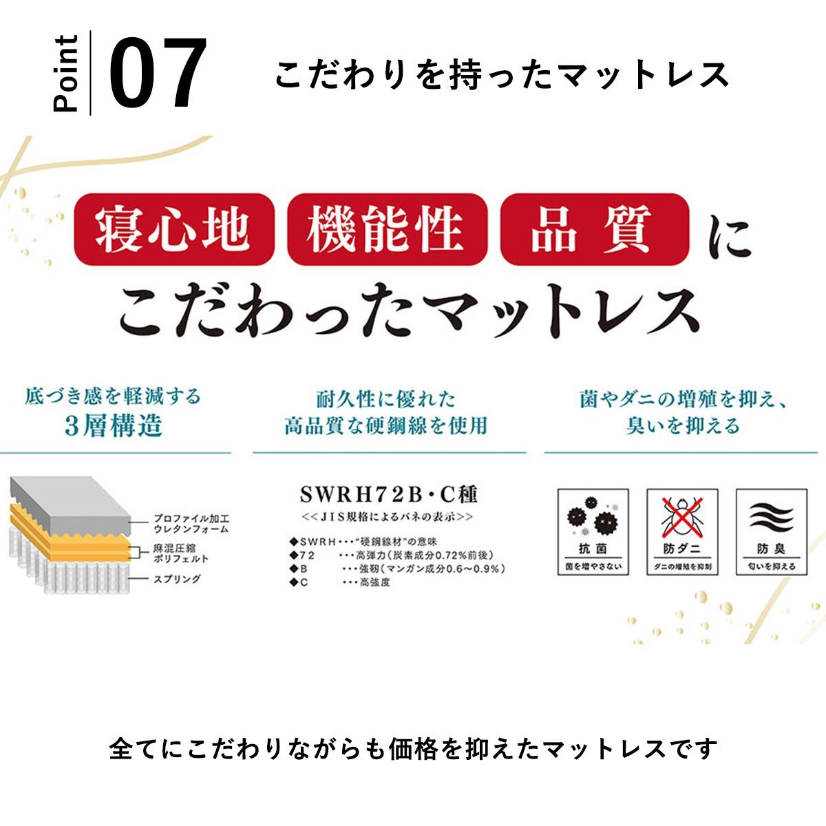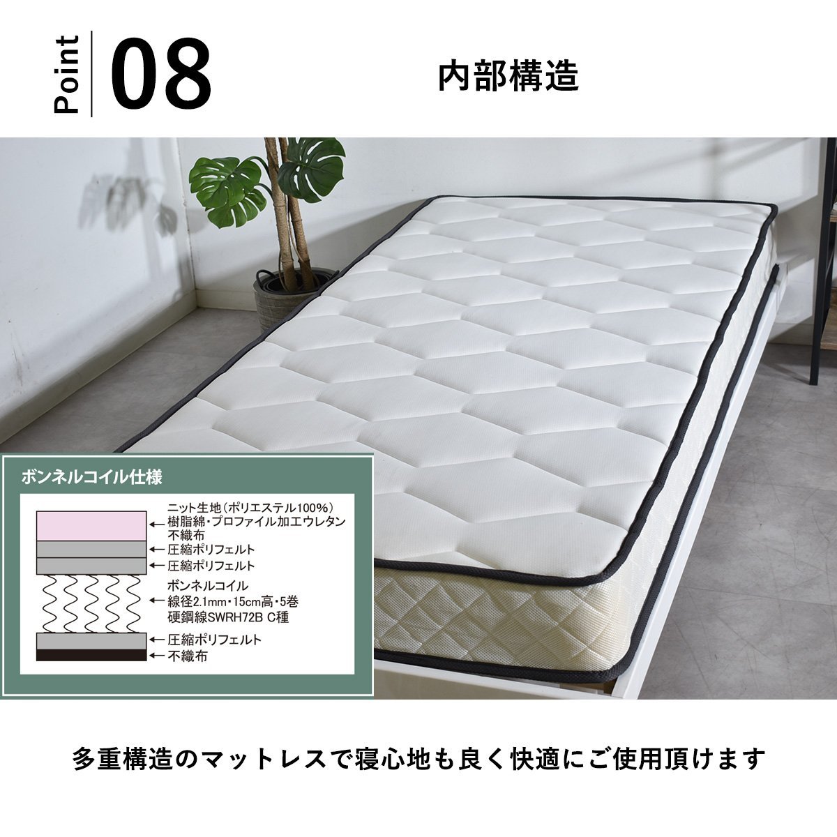 抗菌・防ダニ・防臭セミダブルマットレスです。 仕様詳細は写真を参照お願いします。。 |