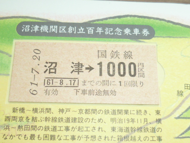 ※ 記念切符★沼津機関区創立百年 記念乗車券★静岡鉄道管理局★昭和61年 ※