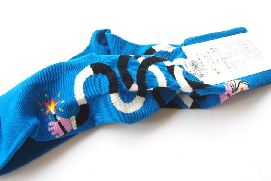 鮮やかなブルーをベースにマジシャンの手がデザインされているソックスです。