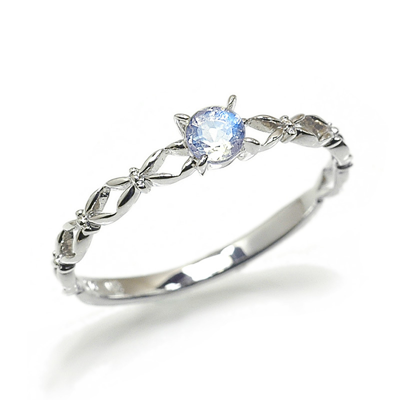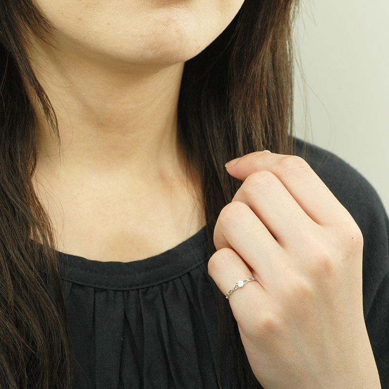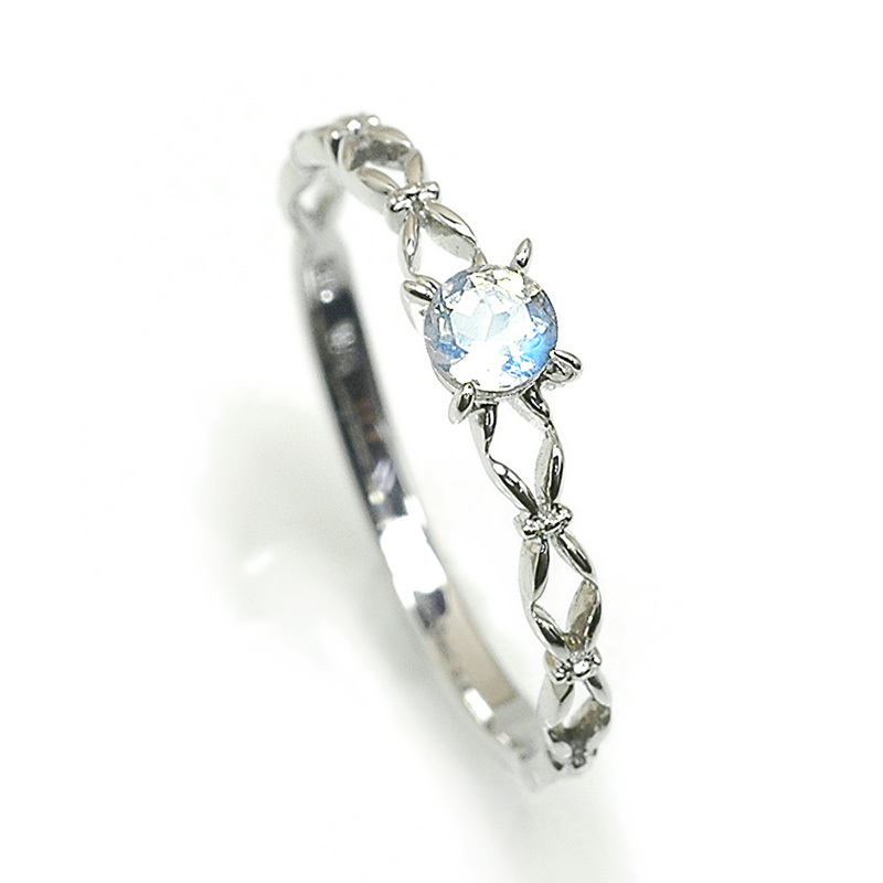 幻想的に輝くブルームーンストーンを中央に配したデザインは、まるでティアラのようなイメージです。
