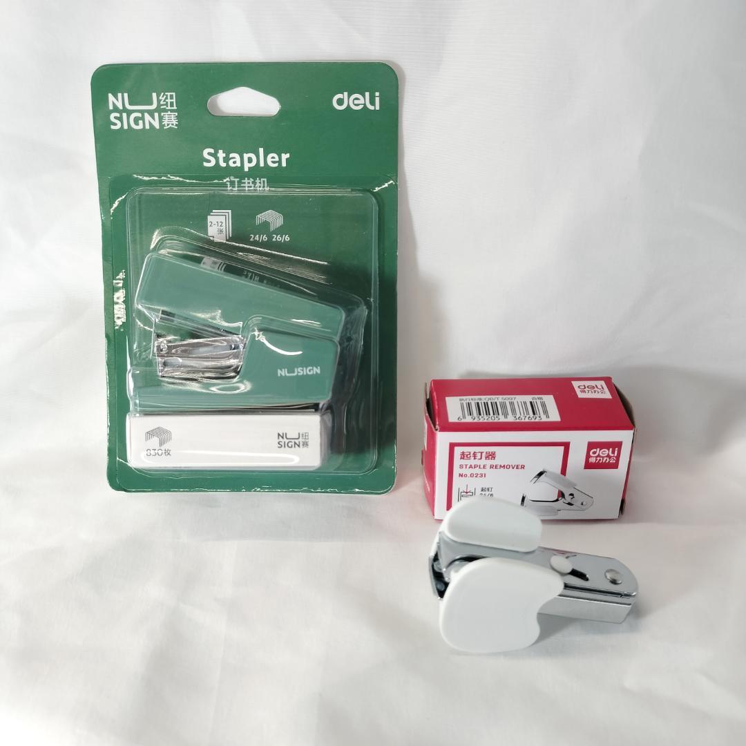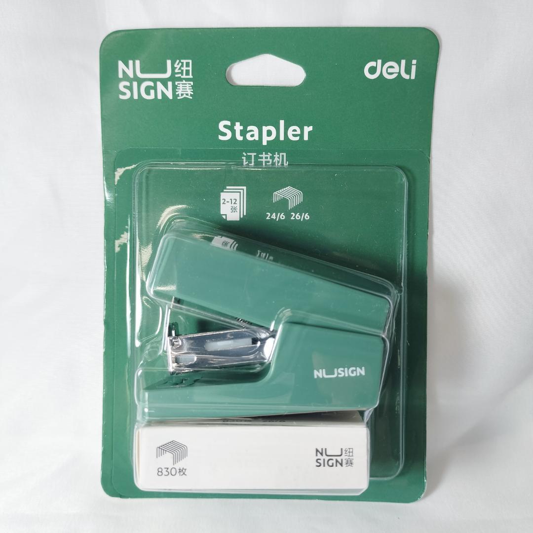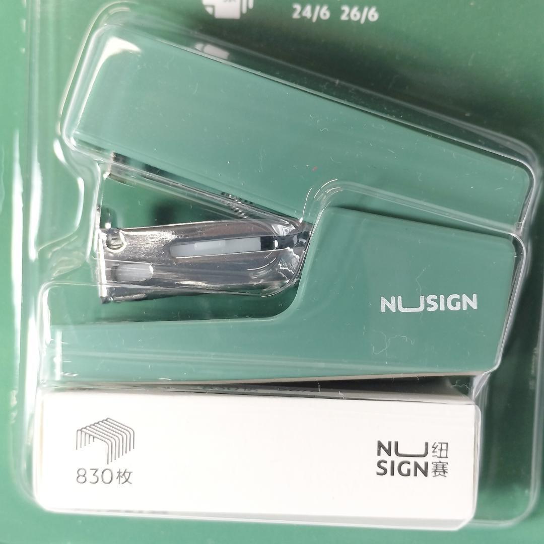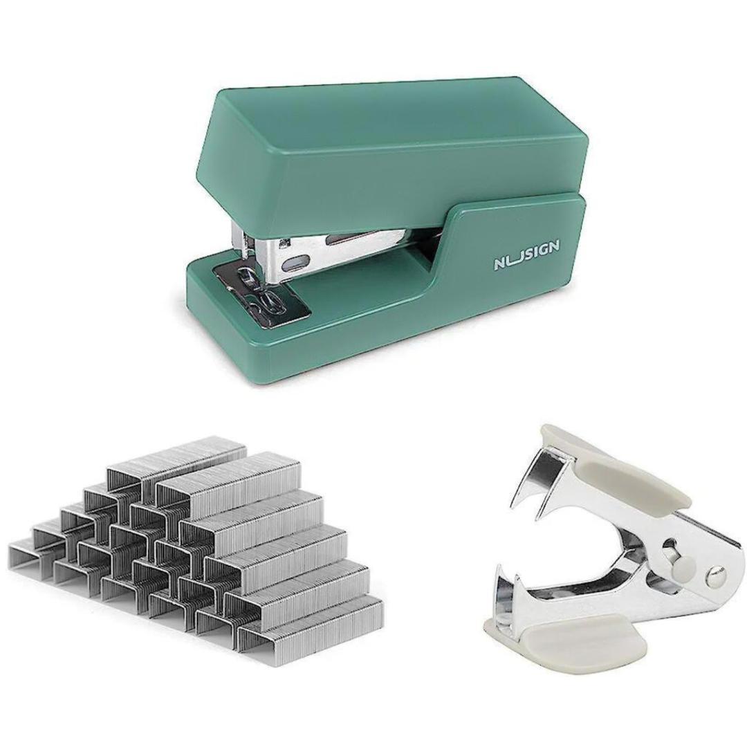 ■NUSIGN ミニホッチキス オフィスデスクトップホッチキス グリーン 標準ホチキス針830個 ステープルリムーバー付き