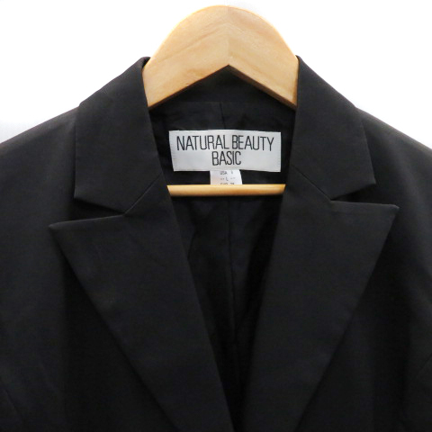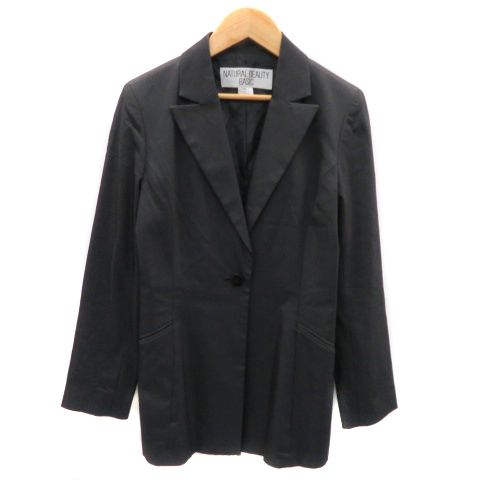 ナチュラルビューティーベーシック テーラードジャケット ミドル丈 総裏地 シングルボタン 無地 L 黒 ブラック /YK31 レディース