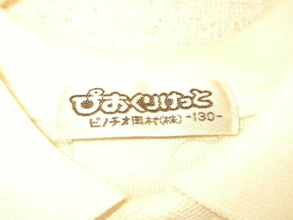 ピノチオ・ぴおくりけっと 胸に刺繍ワッペンのついたアイボリー色長袖ポロシャツ・130サイズです。ほとんど着ることなくしまっていた物です。ボタンの縁に変色部分がございます。送料はクリックポスト185円です。