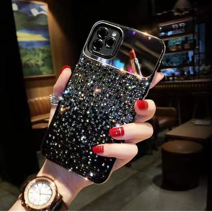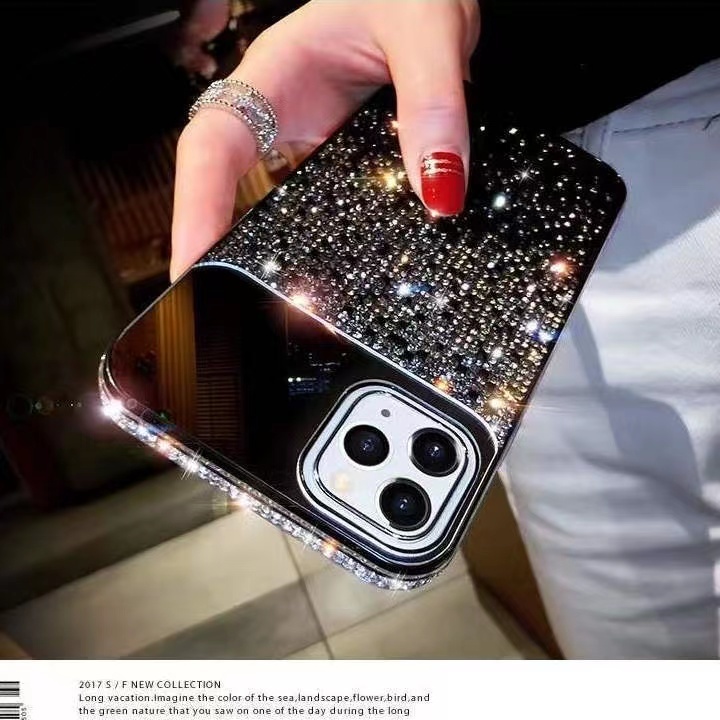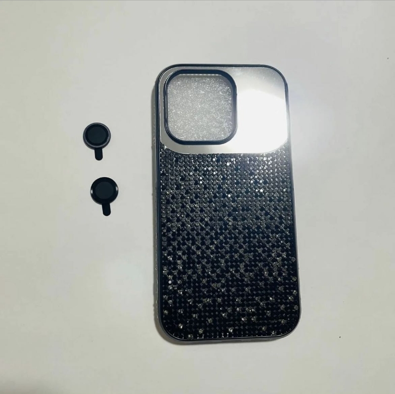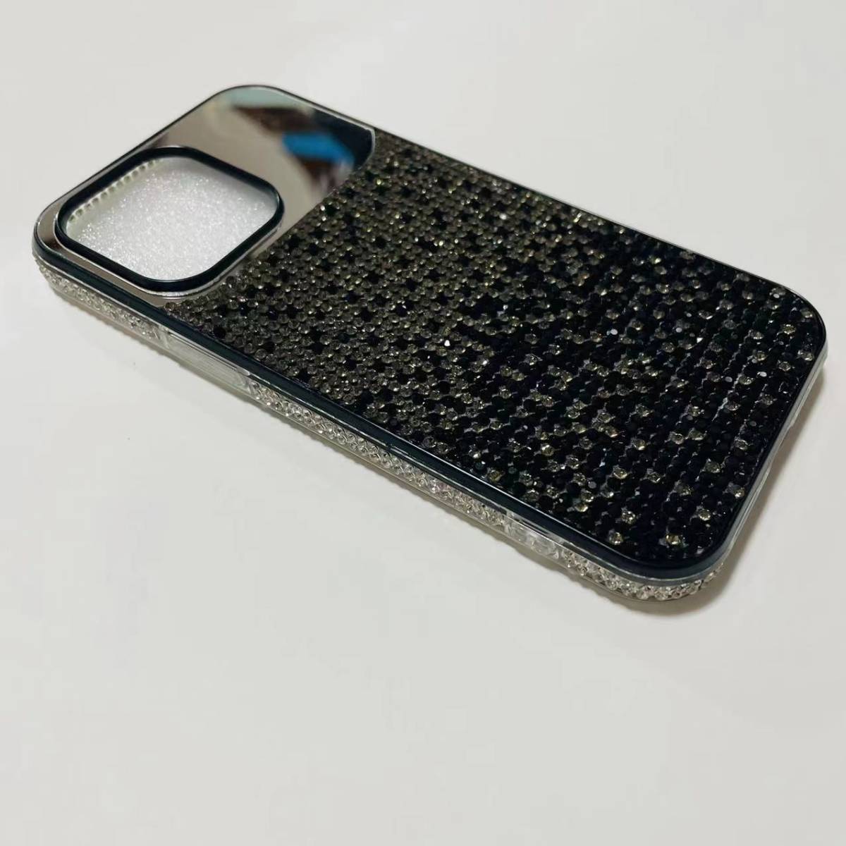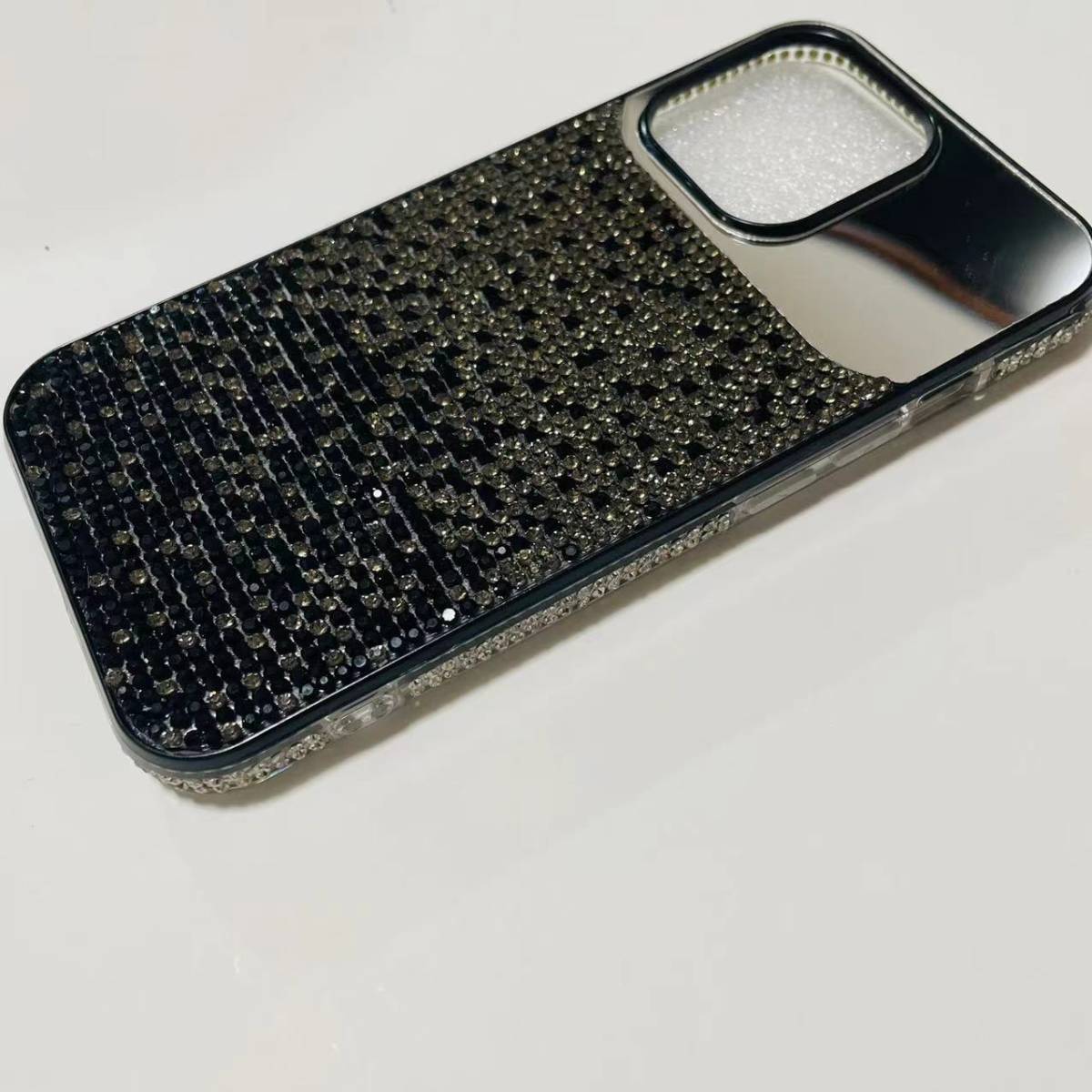iPhone13ラインストーン ケース iPhone14 iPhone14Pro カメラレンズカバー付き 化粧直し キラキラ オシャレ ブラックシルバー