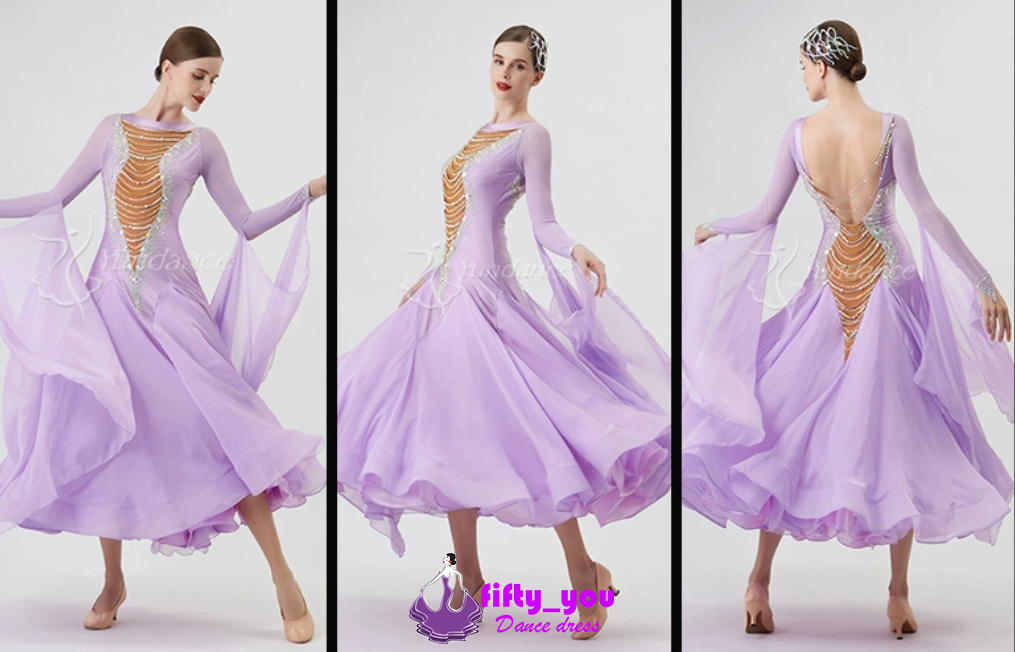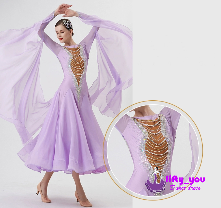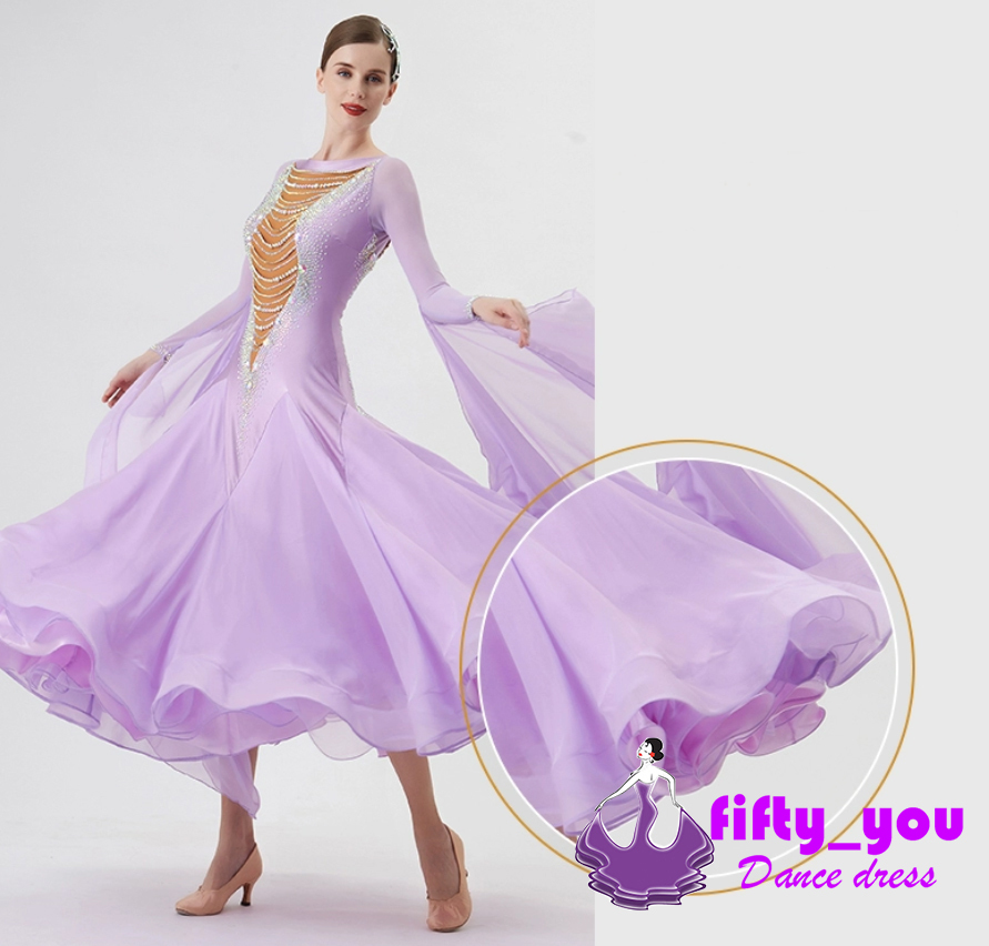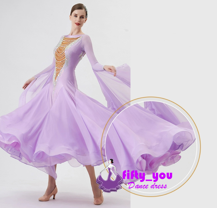 新品 レディース社交ダンス衣装 サイズセミオーダー キラキラライトストーン飾り モダンドレス 競技試合ドレス 優しいパープル