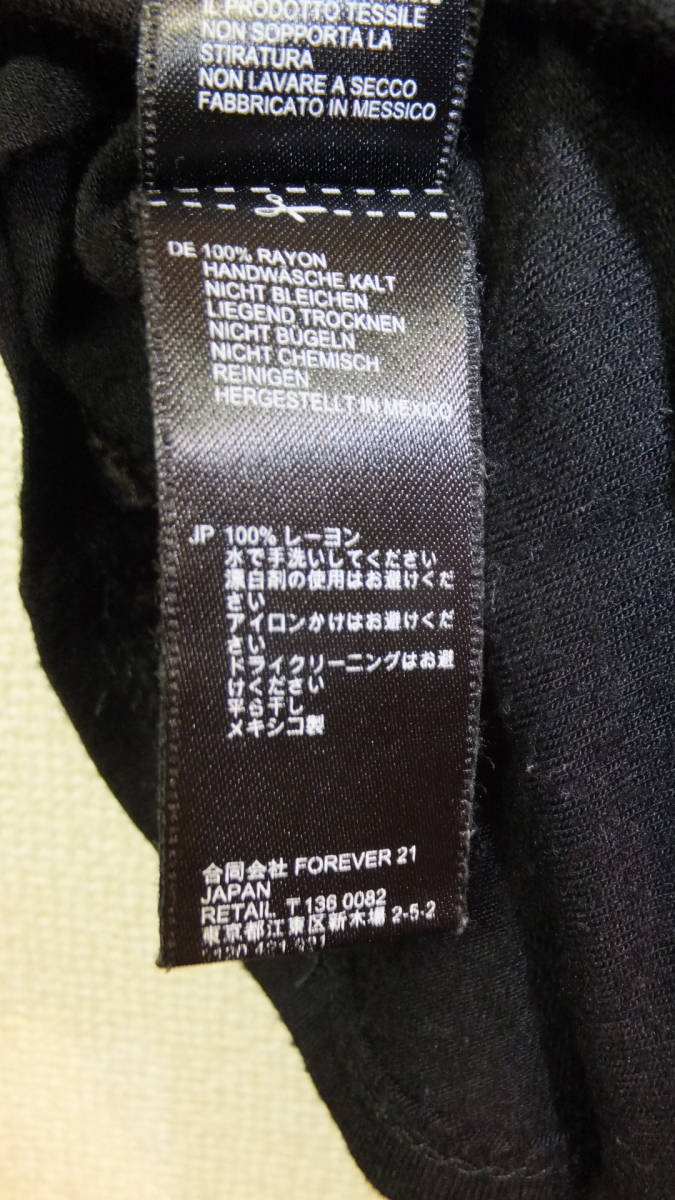 ★FOREVER21★Ladies tops Size S フォーエバー21 レディーストップスサイズS USED IN JAPAN 黒色 Tee 難有 平置きにて着丈約49Cm、身幅約49Cm、小穴あり中古品ですので神経質な方はご遠慮ください。 落札後の発送は各週明けを予定しております。仕事の合間に出品しておりますので、ご質問やご案内が遅れることがございます。あらかじめご了承下さい。 質問などがございましたら、おしらせくださいませ。