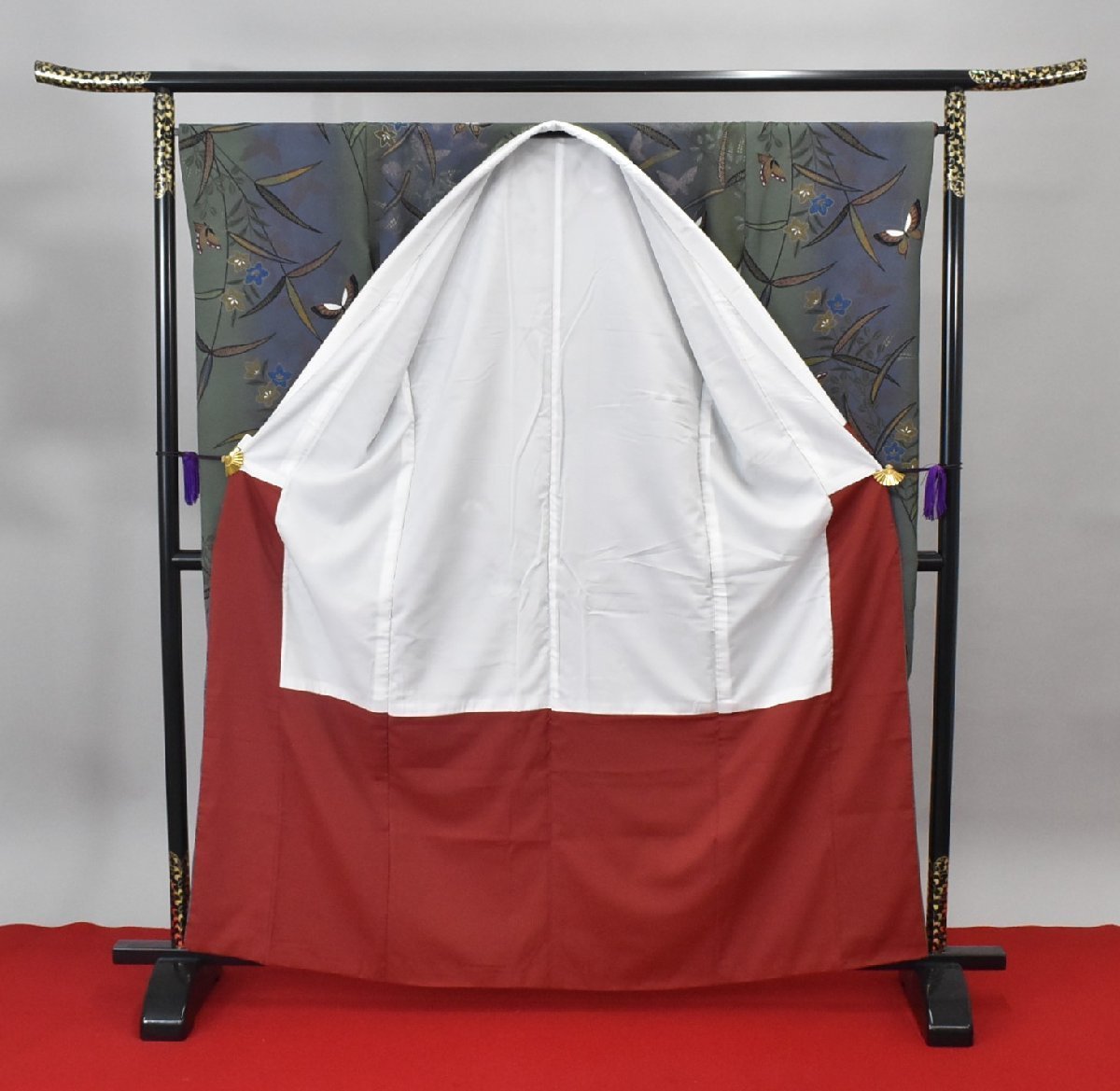 | サイズ | ▼身丈 (背中から) 157cm ▼裄丈 67cm ▼袖丈 107cm ▼後巾 30.5cm ▼前巾 22.5cm |