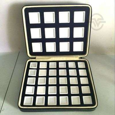 商品名:宝石ルースケース42個+トランクボックスセット レザー調 ポータブル トラベル 原石ディスプレイ トランクショー 展示会 黒 革