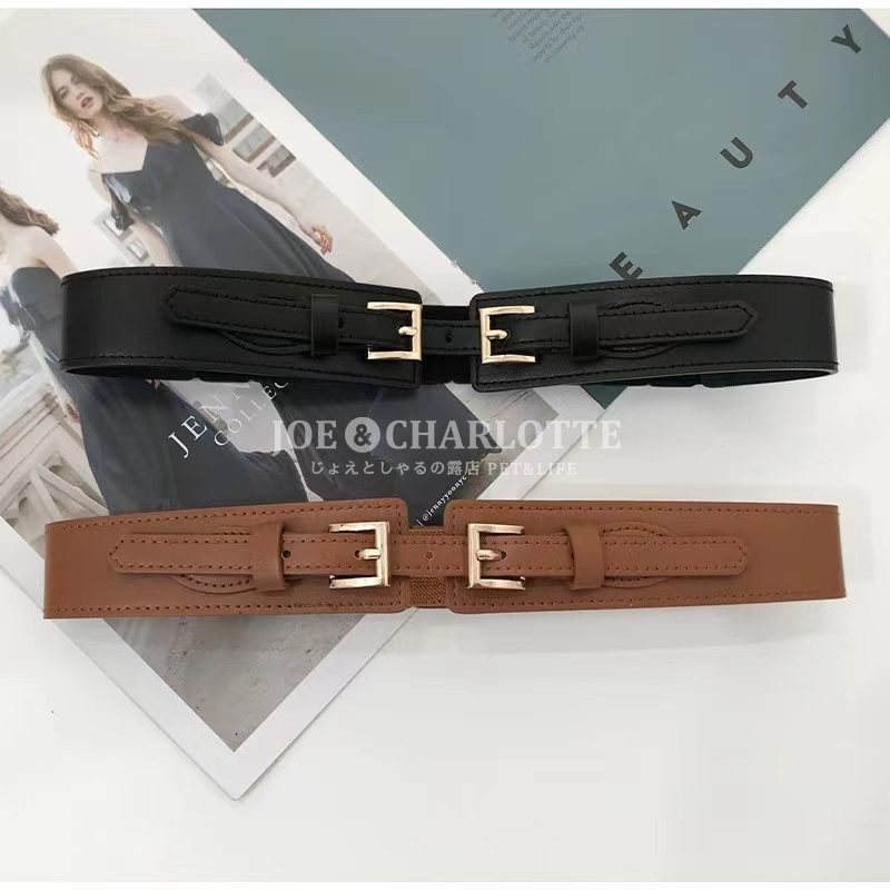 【ブラック】レザーワイドベルト ゴム 弾力 コルセット 太ベルト くびれ 黒 ワンピースに