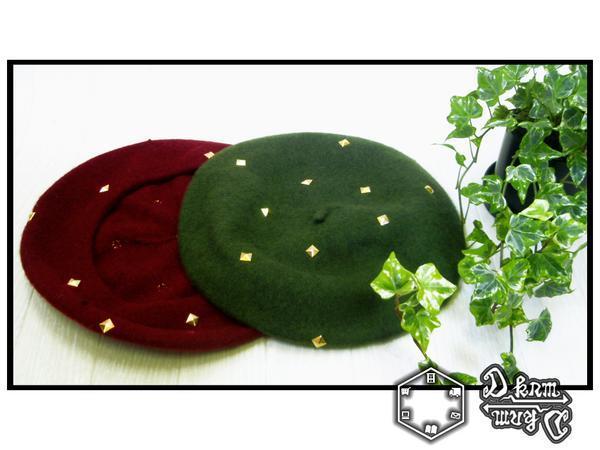 新品 お洒落 かわいい 大人気 ウール wool 混 ゴールド スタッズ ベレー ベレー帽 BERET 帽子 レディース 女性 アウトドア UV対策 GRE