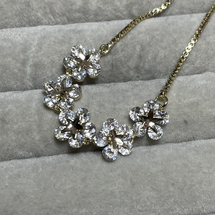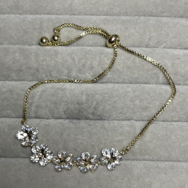 最高級のaaaジルコニアを5連の花に飾ったゴールドカラーの綺麗なブレスレットです^ ^