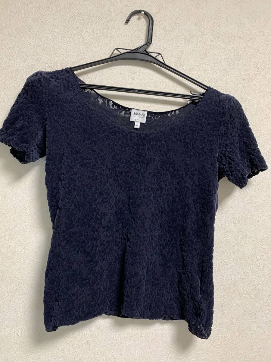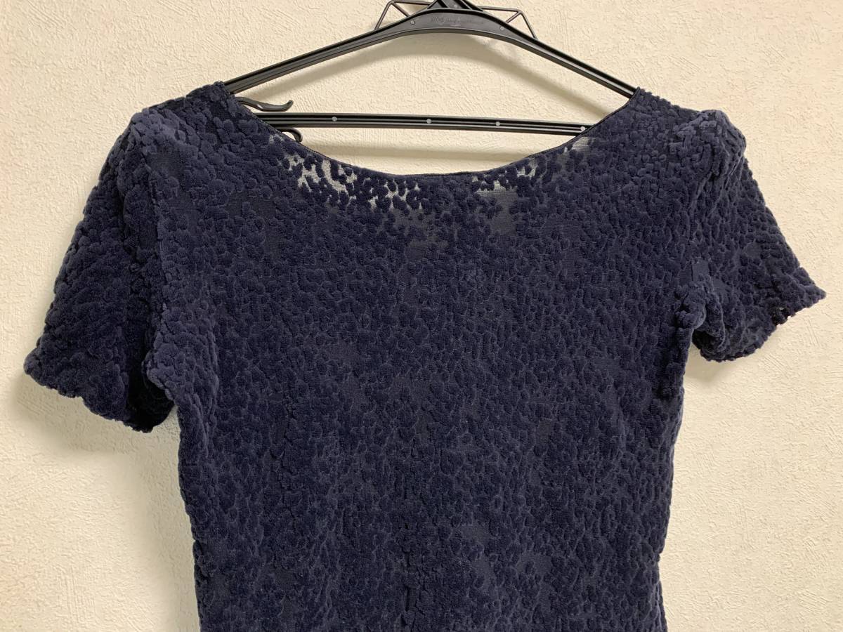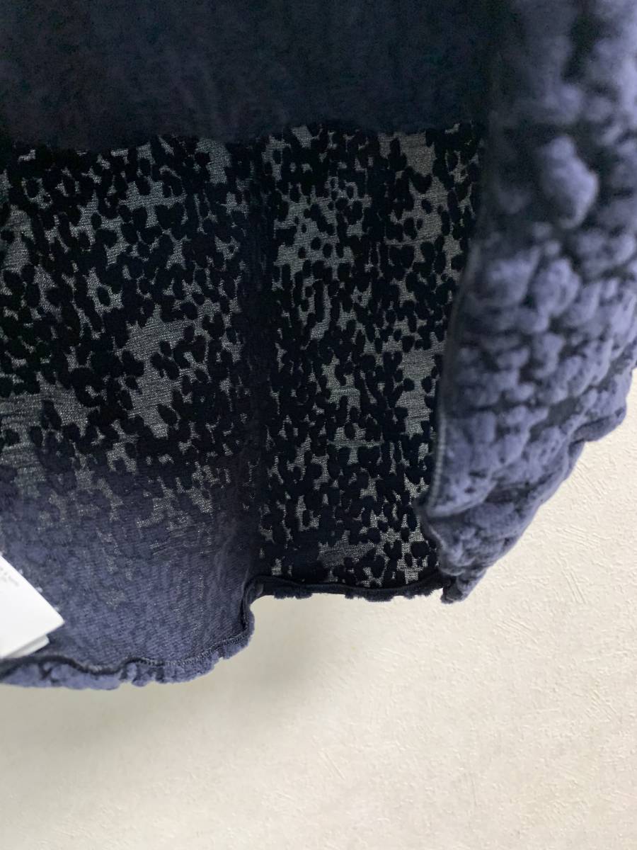 ネイビーに肌触りの良い凹凸が癖になります。細かなデザインが美しいです。いやらしさはなく、大人の透け感をお楽しみください。肩パッドが入っておりますのできちんとしたシーンにもご活躍いただけます。