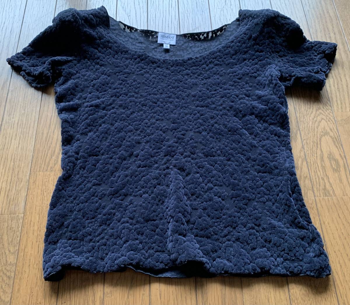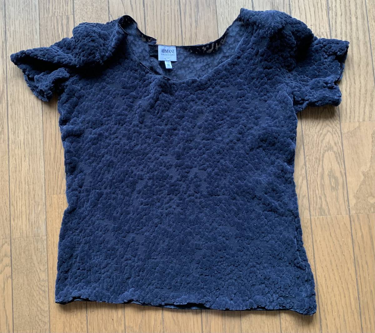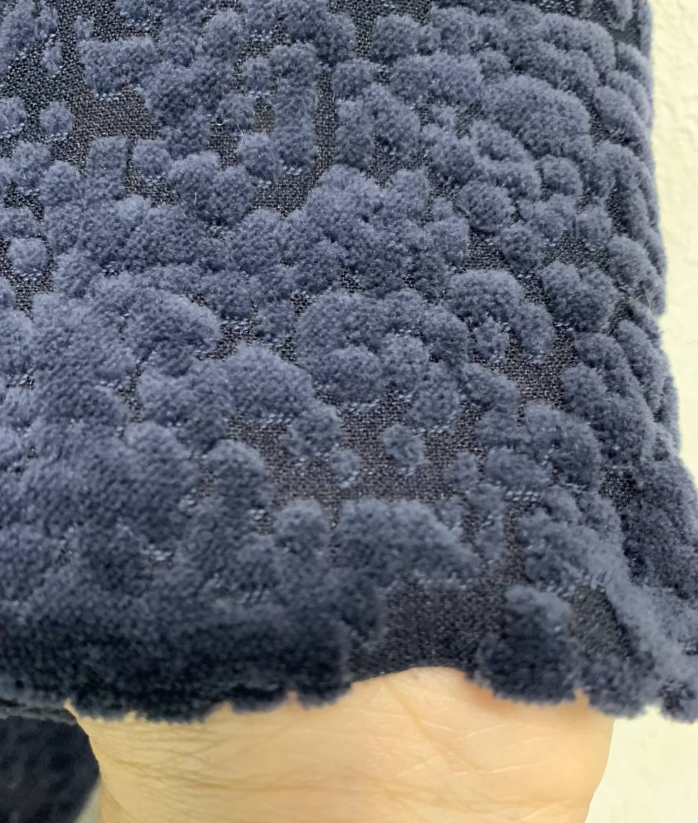 ネイビーに肌触りの良い凹凸が癖になります。細かなデザインが美しいです。いやらしさはなく、大人の透け感をお楽しみください。肩パッドが入っておりますのできちんとしたシーンにもご活躍いただけます。