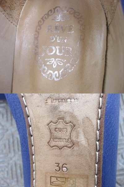 ☆REVE D’UN JOUR☆パンプス☆レザー☆BLUE☆36(23cm)☆ローヒール☆モロッコ製☆レーヴダンジュール☆