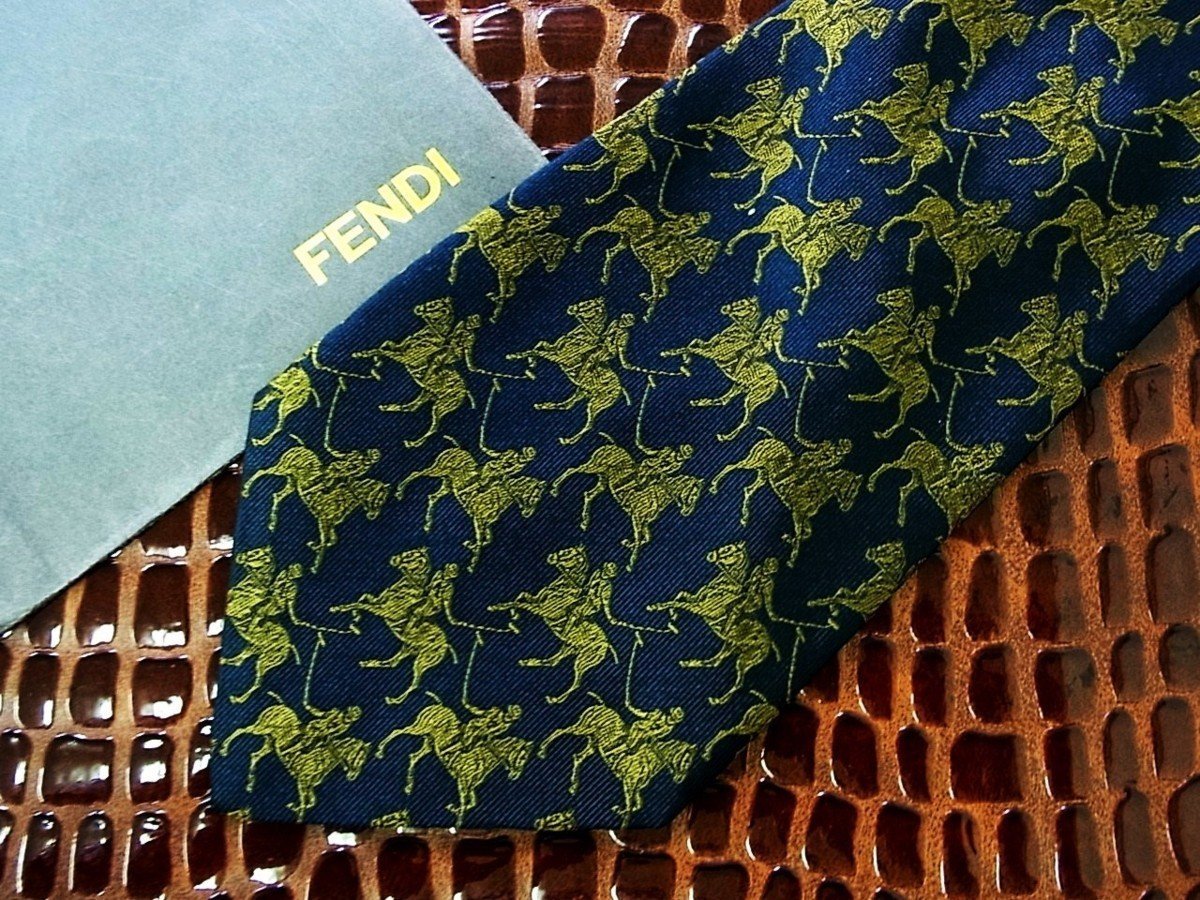 ♪今週の特売980円~♪0799♪良品【FENDI】フェンディ【ポロ 乗馬 柄】ネクタイ♪