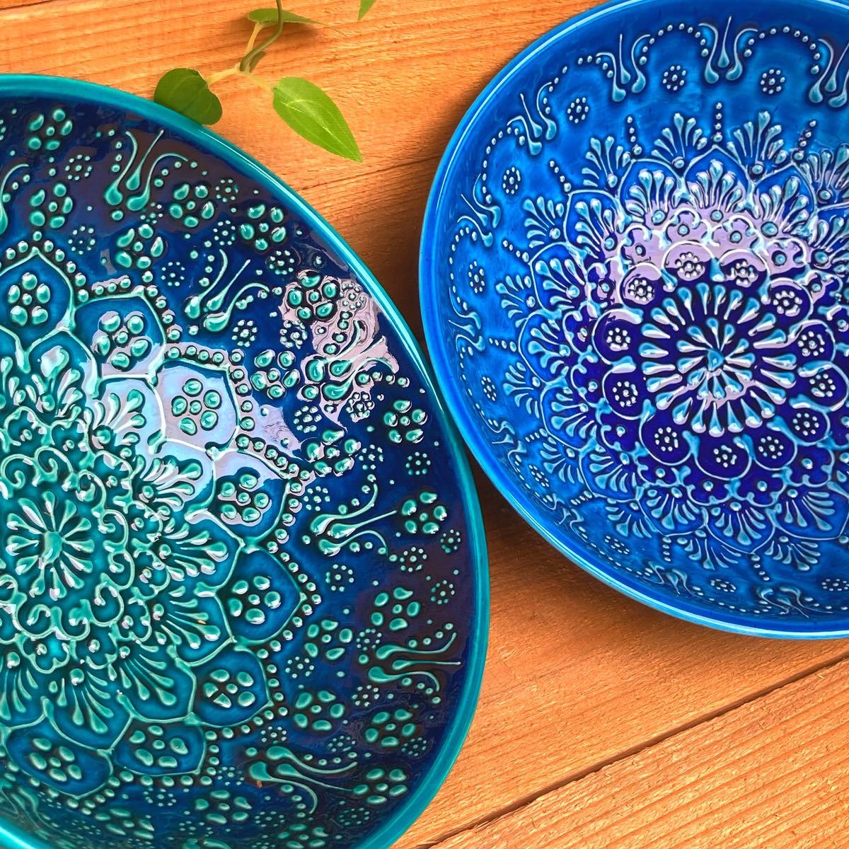 トルコの職人が1点1点絵付けしたかわいいトルコセラミック陶器のボウル皿です