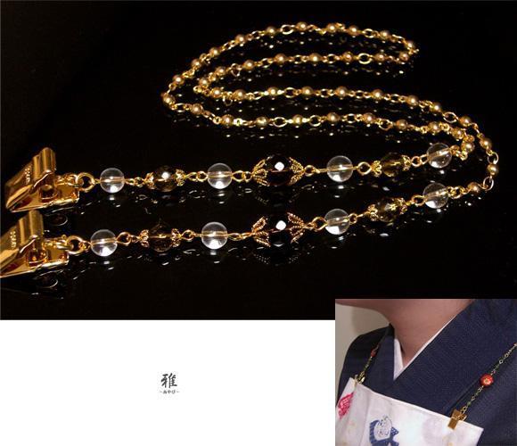 天然石水晶をお繋ぎしたスッキリ素敵な袂留めをお作り致しました。