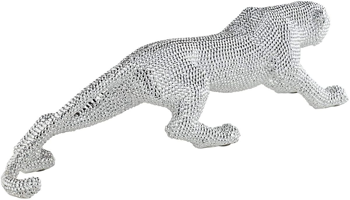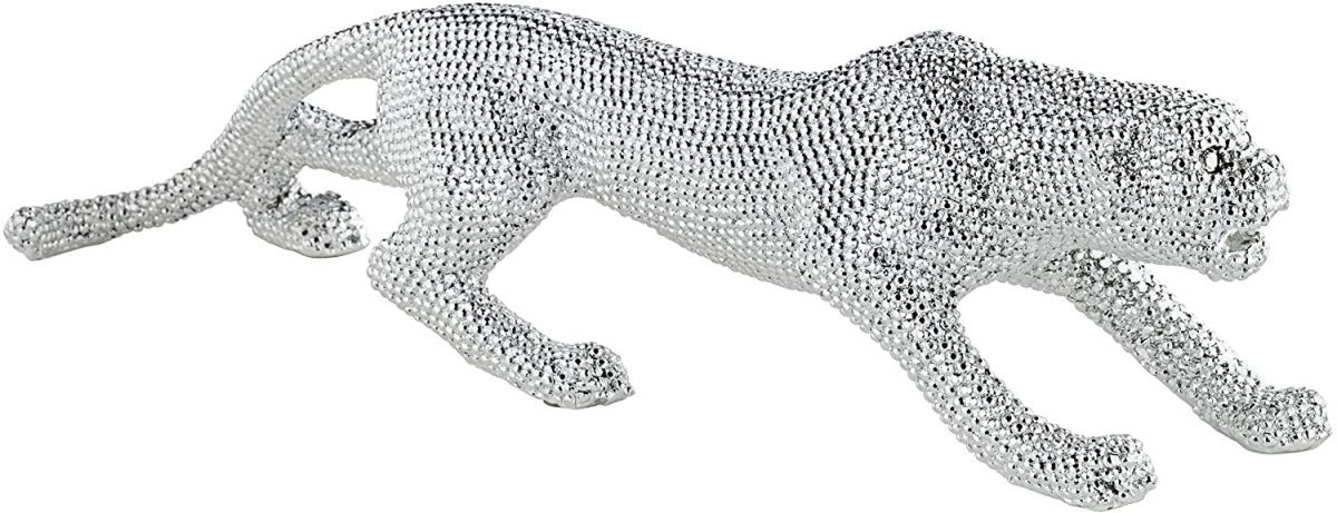 ゴージャスな、うろつく、シルバーメッキされたヒョウ(彪)の彫刻 インテリア彫像置物(輸入品)