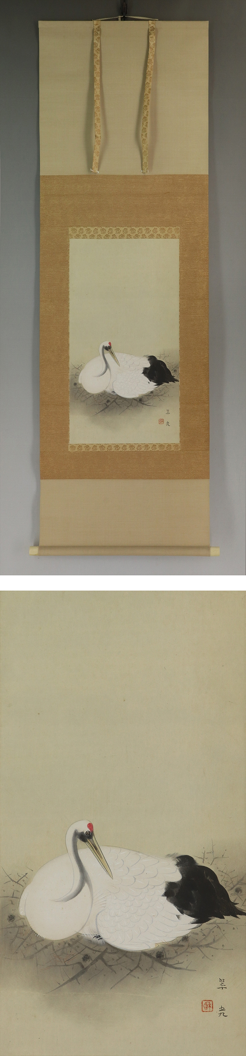 | №2203080【真作】福田翠光【巣籠】◆紙本◆共箱◆二重箱◆掛軸 | |