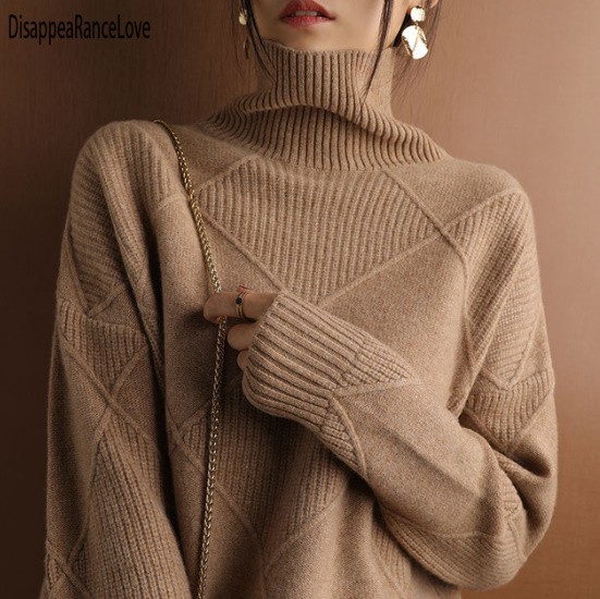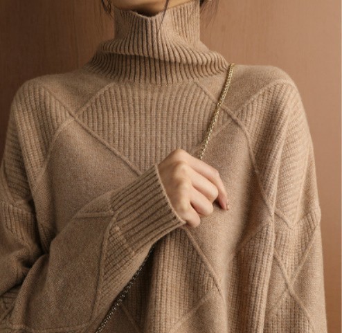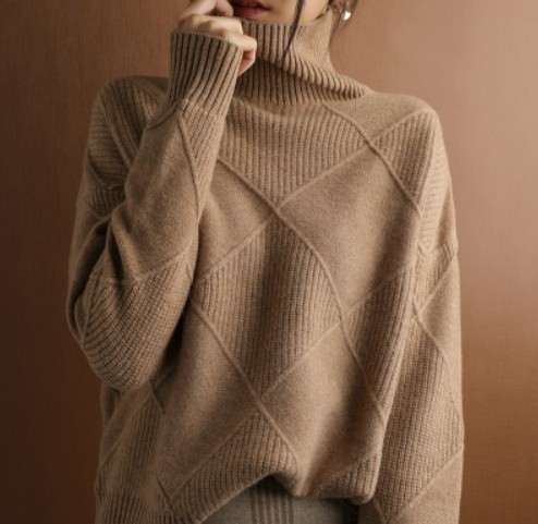 送料500円 秋冬 タートルネック プルオーバー セーター プラスサイズ ニット セーター ブラウン Aaa612