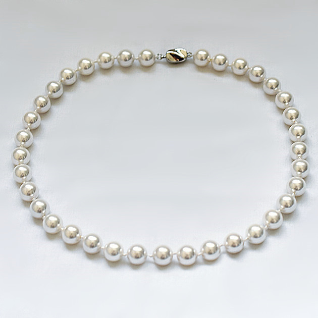 ●パール素材:貝パール、直径10mm。●金具:真鍮、ロジウムコーティング。●カラー:ホワイト、写真に参照 。●サイズ:長さ約42cm 、アジャスターナシ。●重さ:約56g。