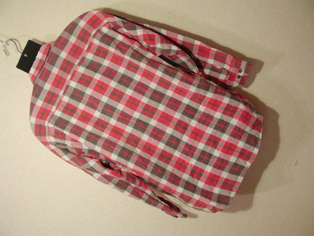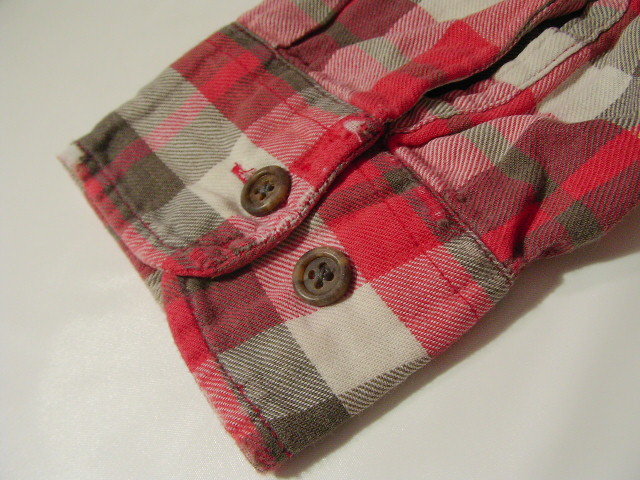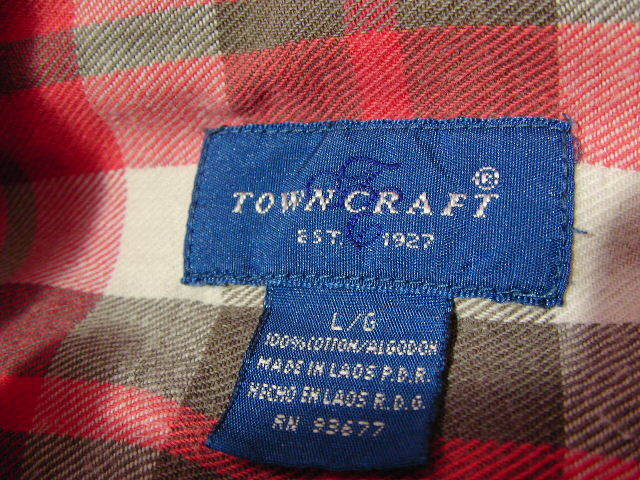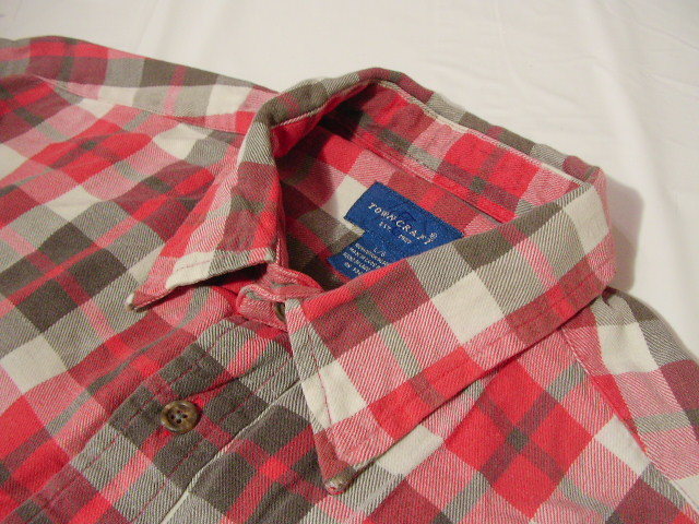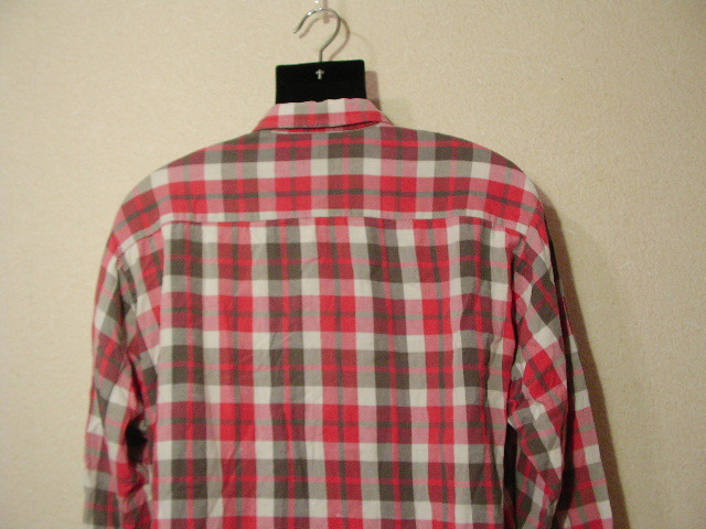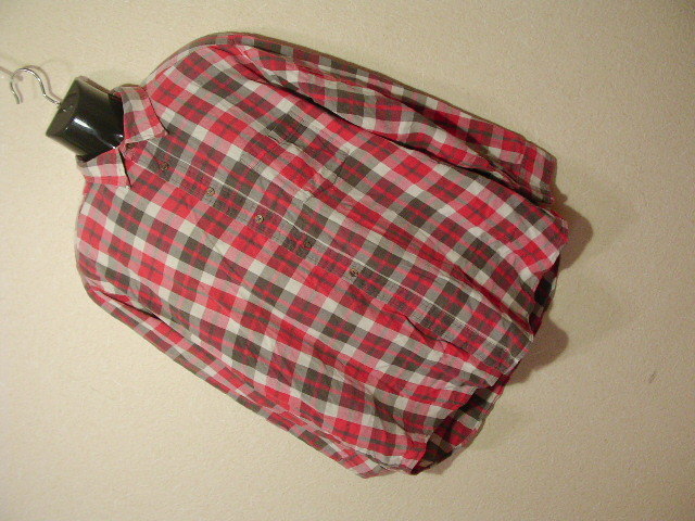 ssy4909 TOWN CRAFT メンズ 長袖 コットンシャツ レッド×ブラウン×グレー ■ チェック柄 ■ カジュアル Lサイズ
