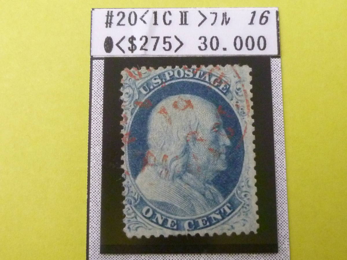 22L A №10 アメリカ切手 初期 1861年 SC#20 1c タイプⅡ 使用済・VF 【SC評価 $250】