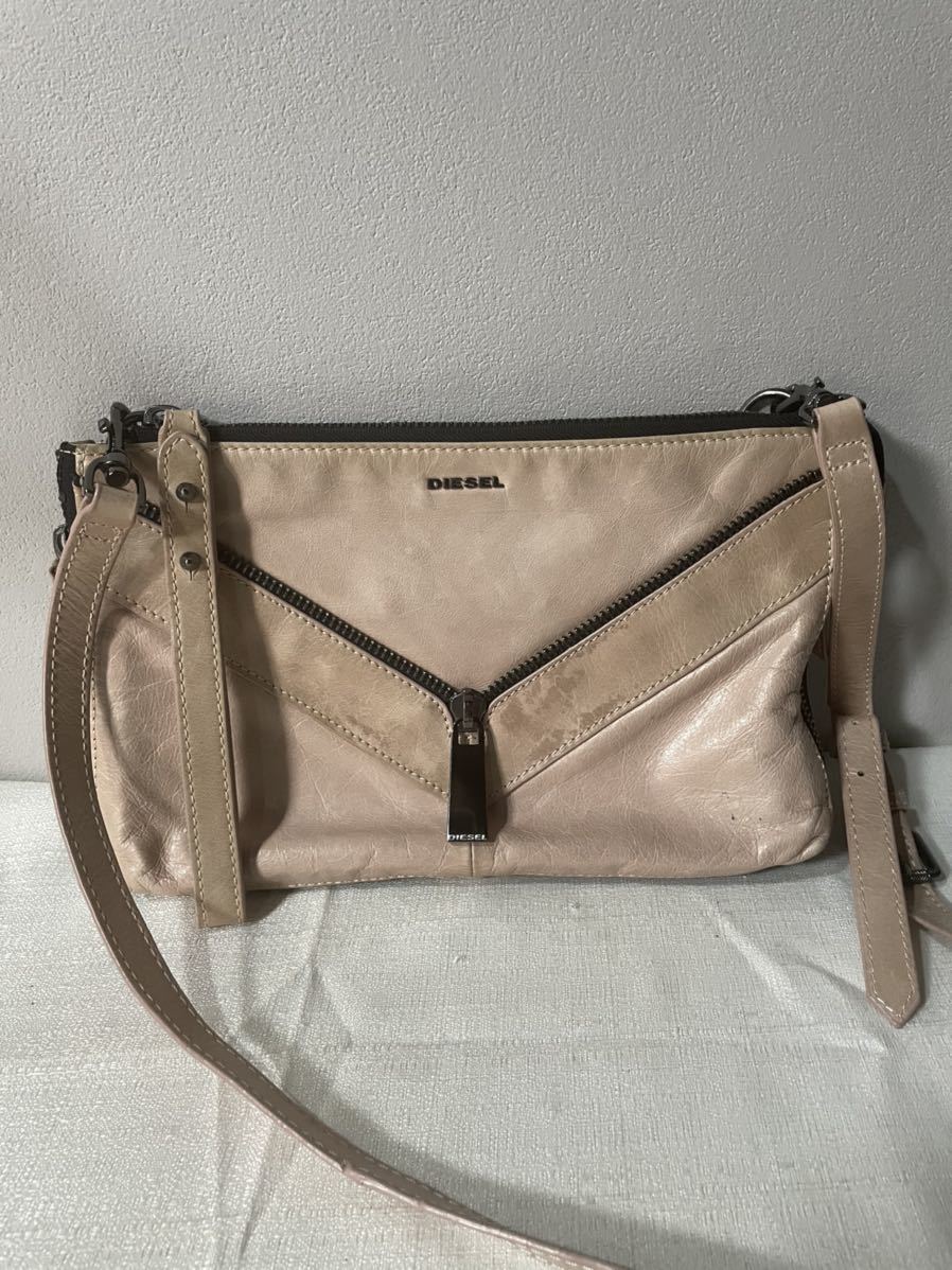 本革ディーゼルDIESELショルダーバッグ鞄グレーレディース通勤通学仕事ビジネス旅行トラベル