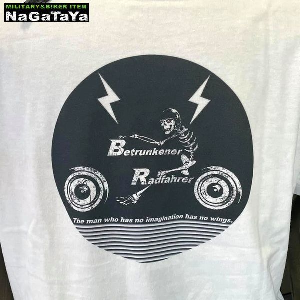 BETRUNKENER RADFAHRER ベェトォンナ ラドファ スケルトンライドバイカー T-シャツ Mサイズ ホワイト 髑髏 モーターサイクル