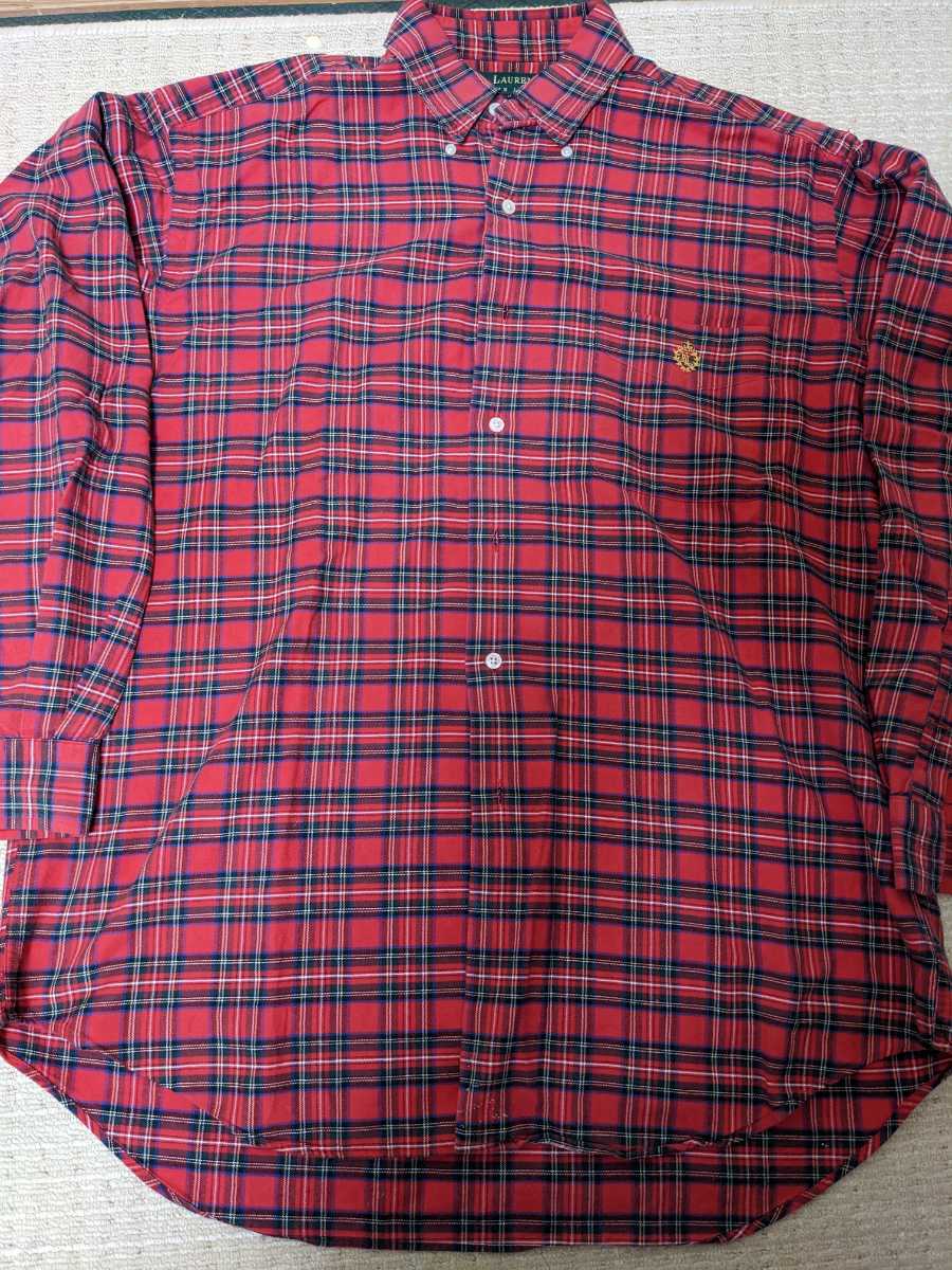 ラルフローレンの長袖シャツになります。状態は普通のユーズドです。サイズはmで丈が約77センチ幅が約62センチです。何かありましたら質問からお願いいたします。ノークレーム・ノーリターンでお願いいたします。