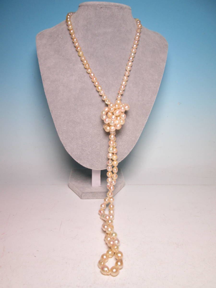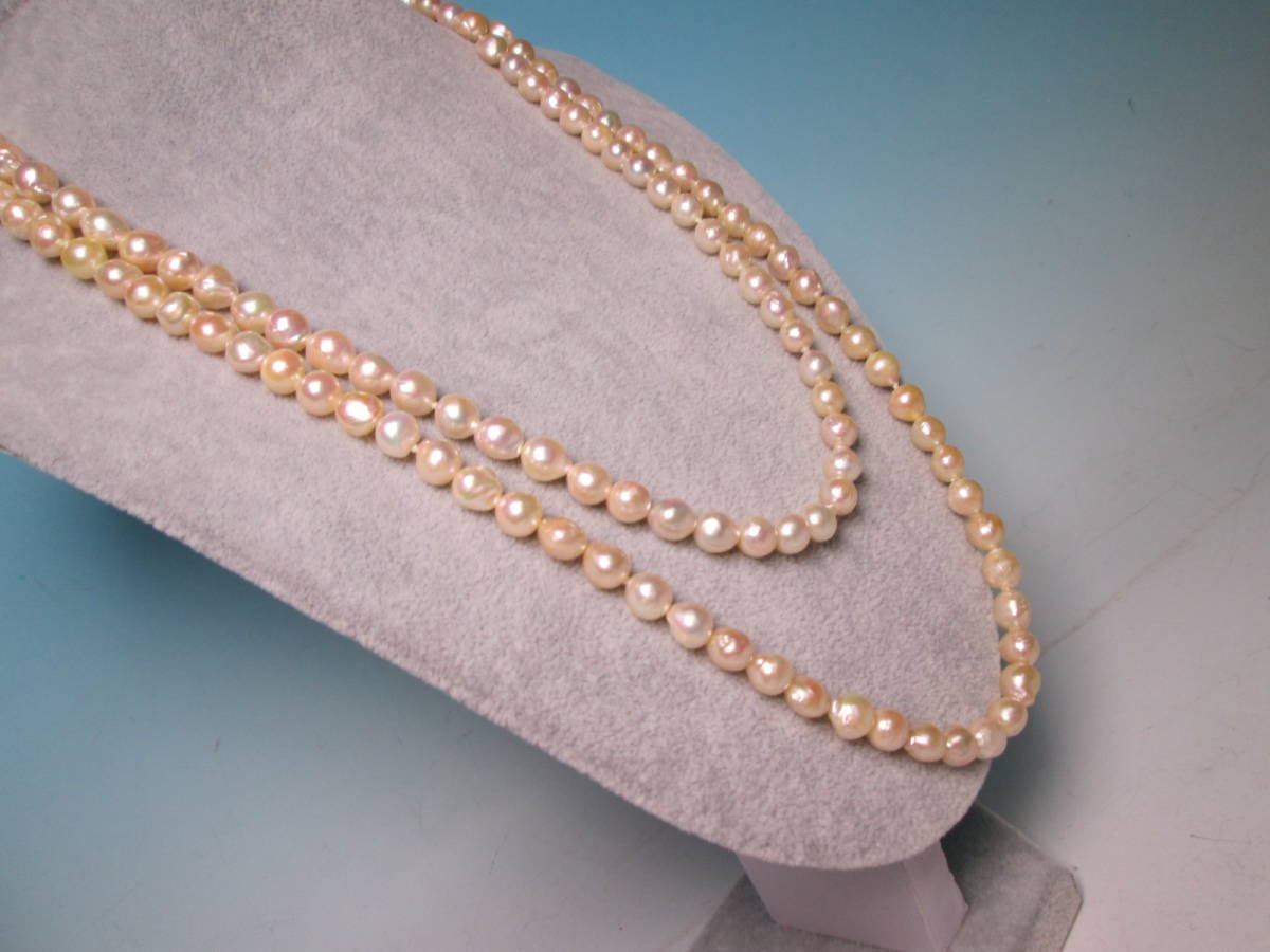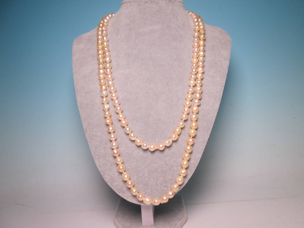 ☆SLVER 本真珠 淡水真珠珠 7,5mm ロング 124cm ネックレス 93,85g
