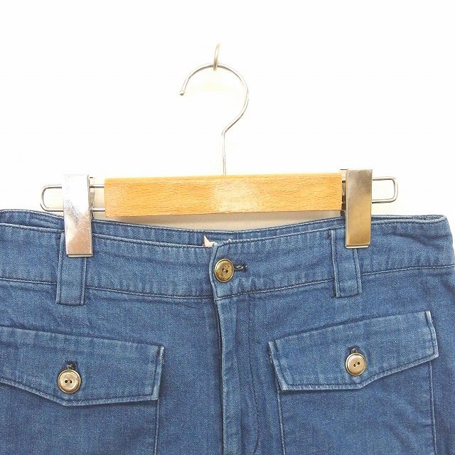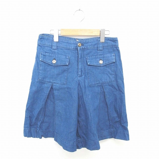 ルルオンザブリッジ LULU on the BRIDGE パンツ ワイド ハーフ デニム 膝丈 ジップフライ 無地 36 紺 インディゴ /TT31 レディース