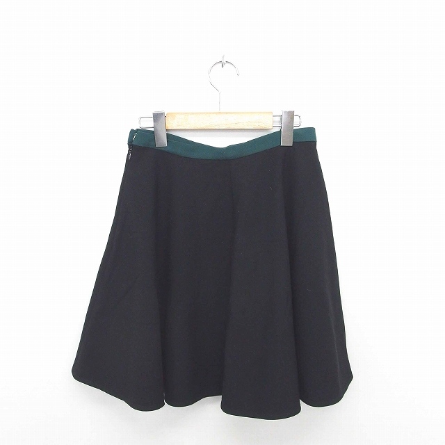 バンヤードストーム BARNYARDSTORM スカート フレア ひざ丈 無地 サイドジップ 0 黒 緑 ブラック グリーン /TT37 レディース