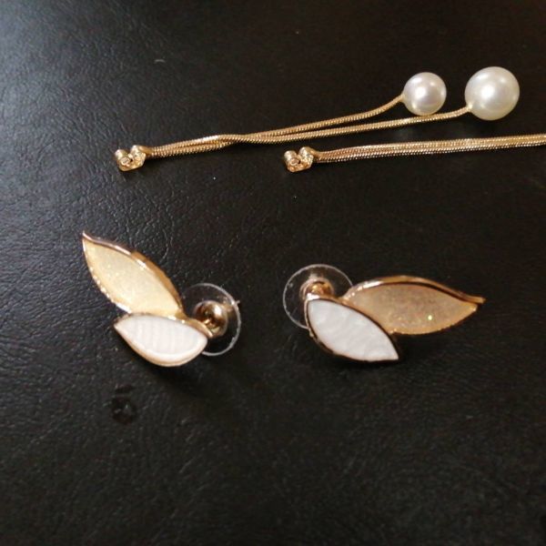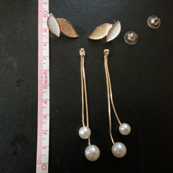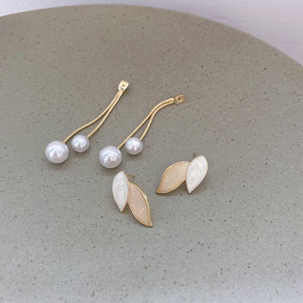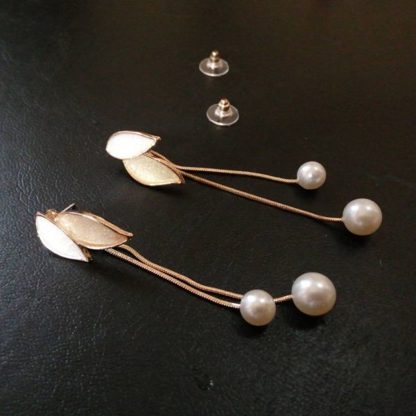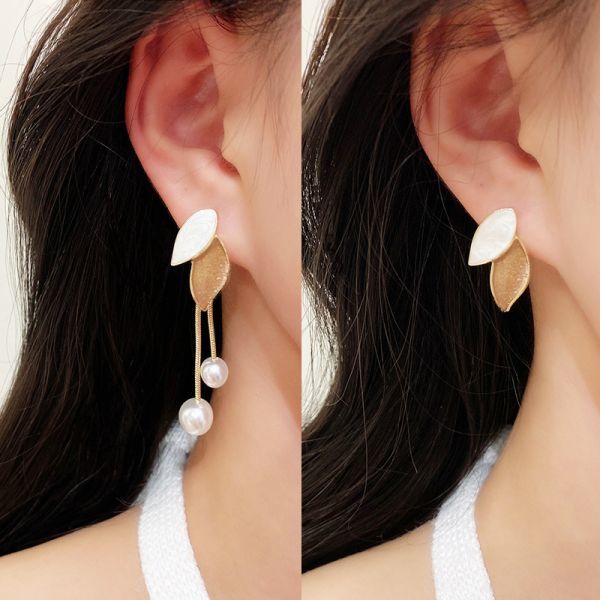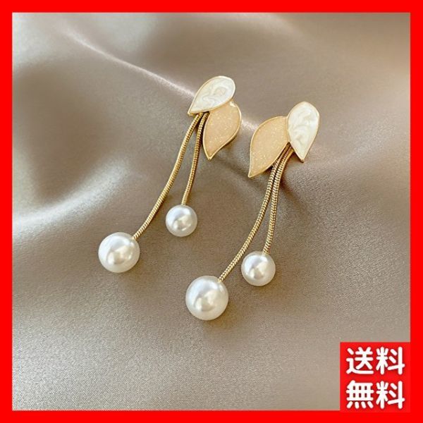 ピアス S925針 ゴールド タッセル 葉 リーフ 真珠 パール スパンコール レディース 韓国 シミュレート アレルギー 対策 防止 #C1462-2