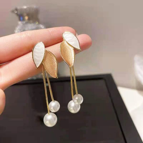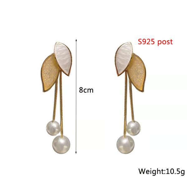 ピアス S925針 ゴールド タッセル 葉 リーフ 真珠 パール スパンコール レディース 韓国 シミュレート アレルギー 対策 防止