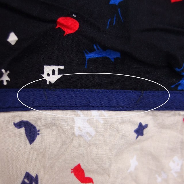 プードゥドゥ POU DOU DOU フレア スカート 膝丈 総柄 ペチコート付き 切替 リボン 綿混 M ブラック 黒 ベージュ /HT2 レディース