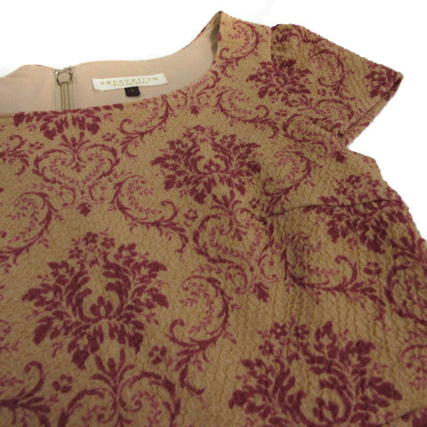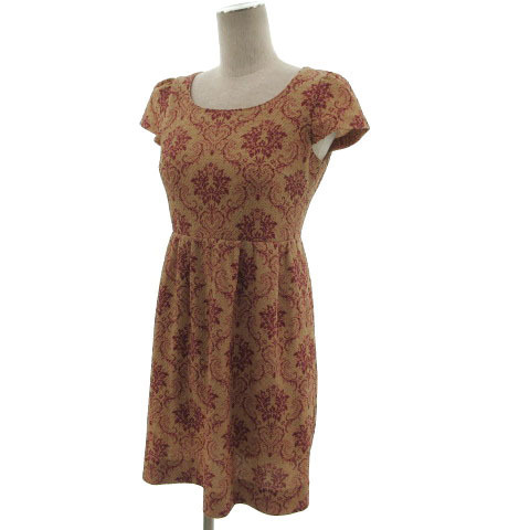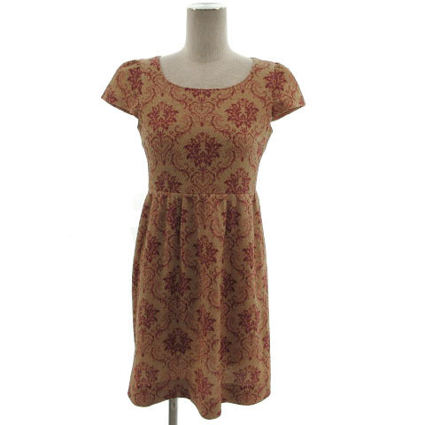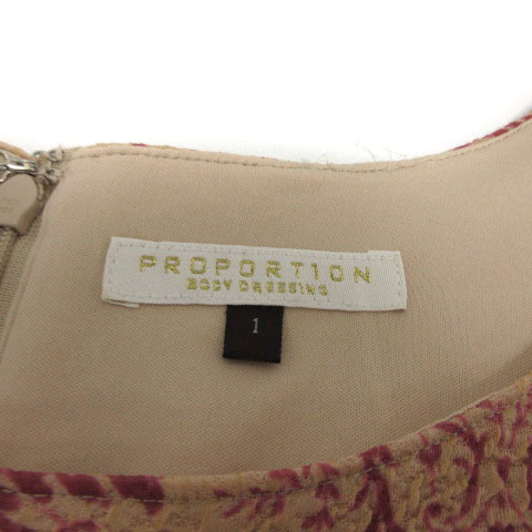 プロポーション ボディドレッシング PROPORTION BODY DRESSING ワンピース 半袖 ひざ丈 フレア 総柄 ピンクベージュ ピンク 1