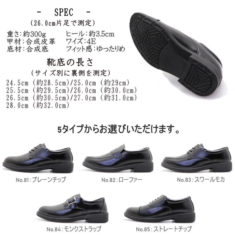 出品のデザイン、色/サイズ No81-プレーントゥ 黒/24.5cm 注)デザイン色サイズ別に出品していますので落札後の変更は出来ません 必ずご希望の色サイズにご入札をお願いします *送料は地域別になります、スマートフォンご利用の方は下段「ストアの情報」よりご覧ください。 下記URLからご覧頂けます http://auctions.yahoo.co.jp/html/profile/cxyqt422.html 注)オークション終了後、店舗からのメールが届くまでご決済はお待ち下さい。 ■□ 横幅ゆったり4Eの低反発インソールビジネスシューズ □■ 歩くことをもっと楽しく、健康的にをコンセプトの スポーツ庁の官民連携プロジェクト「FUN+WALK PROJECT」 に参加した「快適に歩く」ためのビジネスシューズ。 低反発インソールで柔らかな履き心地で軽く、4Eワイズでゆったりした フィット感です。湾曲性に優れたソールで足裏のカーブに沿って 曲がり、歩行がしやすくなっています。 優れた機能性とベーシックなデザインでどんなシーンでもなじみます。 ビジネスシーンをはじめ、普段履きとしても活躍します。 ? SPEC ? 重さ:約300g 甲材:合成皮革 底材:合成底 ワイズ:4E ヒール:約3.5cm フィット感:ゆったりめ *スペックは26.0cmサイズ片足を測定 ※フィット感の満足度は人により様々でございます、ご参考頂きご検討お願い致します。 |