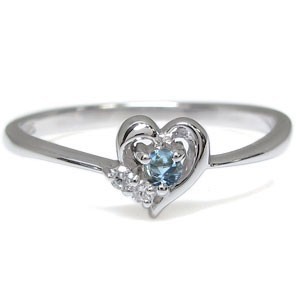 3月誕生石アクアマリンサンタマリアを一粒使用した、シルバー製のハートモチーフリング(指輪)です。