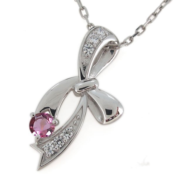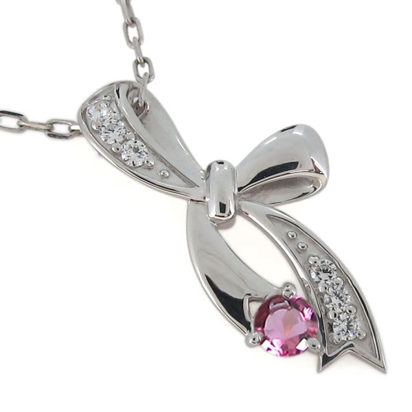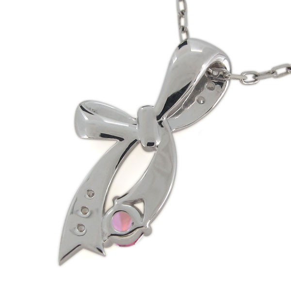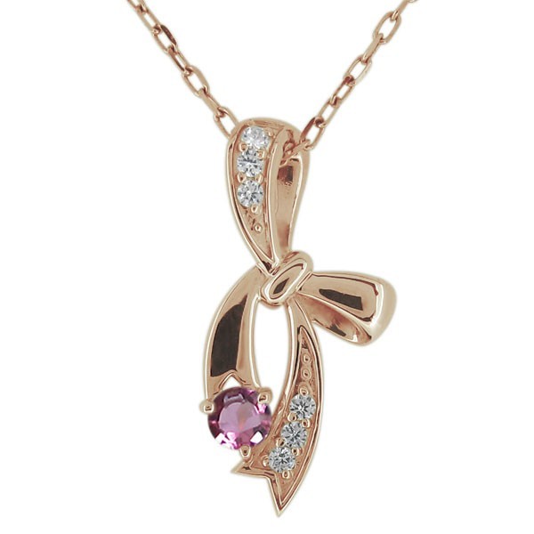 10月誕生石ピンクトルマリンを使用した18金製の、リボンモチーフのネックレス・ペンダントです。