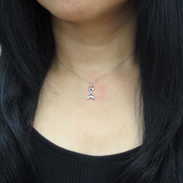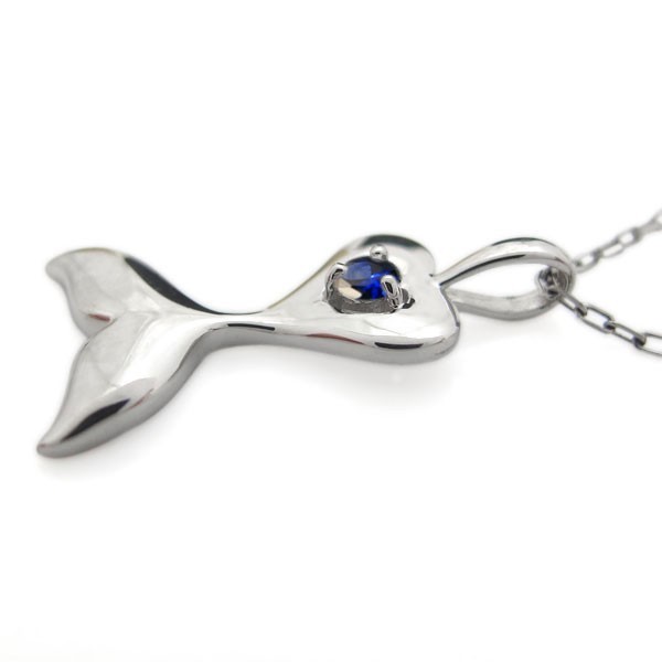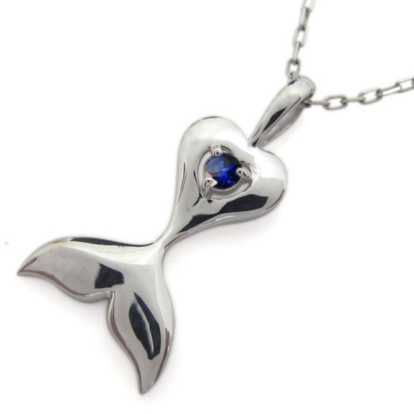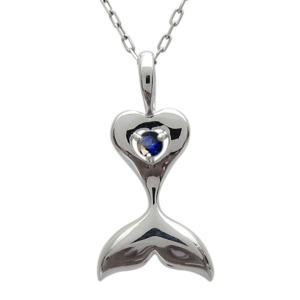 9月誕生石サファイアを一粒使用した、プラチナ製のイルカ(ドルフィン)&ハートモチーフネックレスペンダントです。
