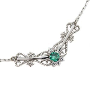 ■石名:主石 エメラルド(約 3.0mm/天然石使用)脇石 ダイアモンド(合計4石で約 0.04ct/天然石使用)