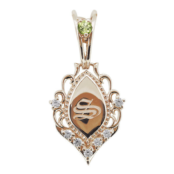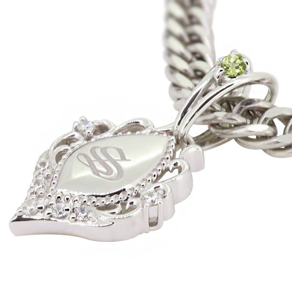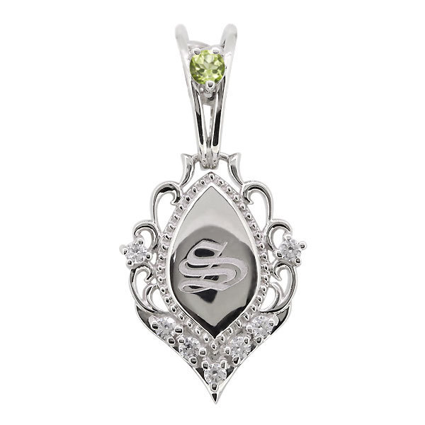 8月誕生石ペリドットを使用したシルバー製の、イニシャル入りメンズペンダントヘッドです。