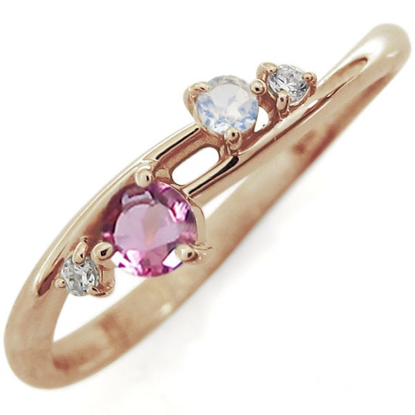 ■石名:主石 (大)ピンクトルマリン(約 3.0mm/天然石使用)(小)誕生石12石から選択可(約2.0mm)脇石 ダイヤモンド(2石合計で約 0.029ct/天然石使用)