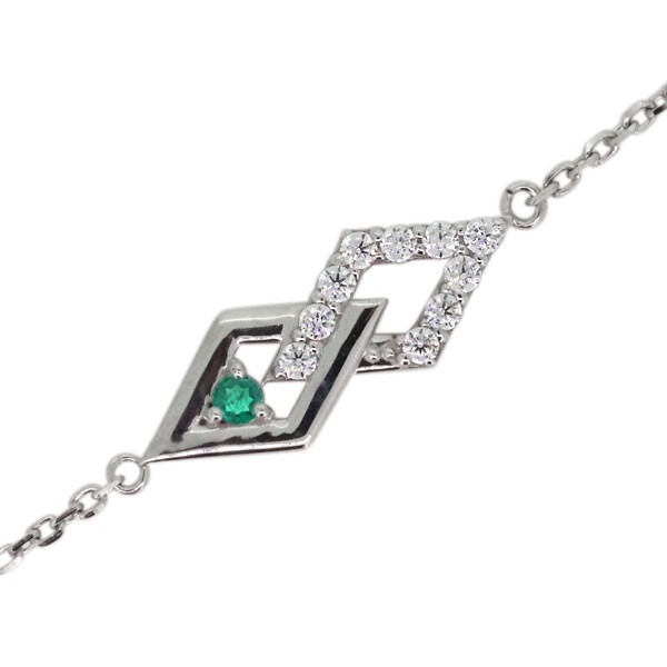 5月誕生石エメラルドを使用したプラチナ製の、スクエアデザインのブレスレットです。