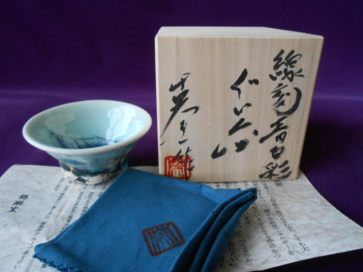 酒器! 林英樹 ☆線刻青白彩盃☆ 新品 杯 ぐい呑 徳利 片口 酒注ぎ 美濃焼 ギフト