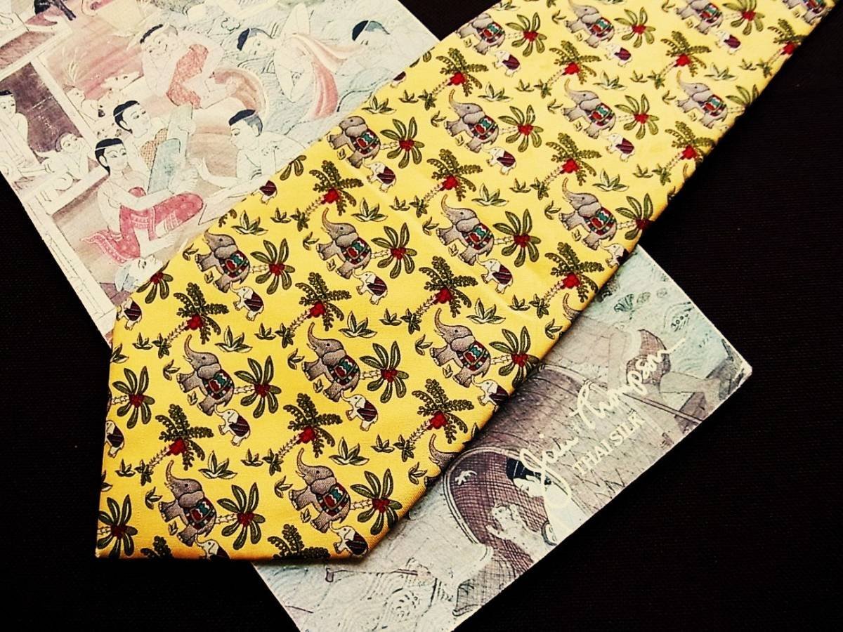 ♪6241C♪良品【象 ぞう 親子 自然 柄】ジムトンプソン【JIM THOMPSON】ネクタイ